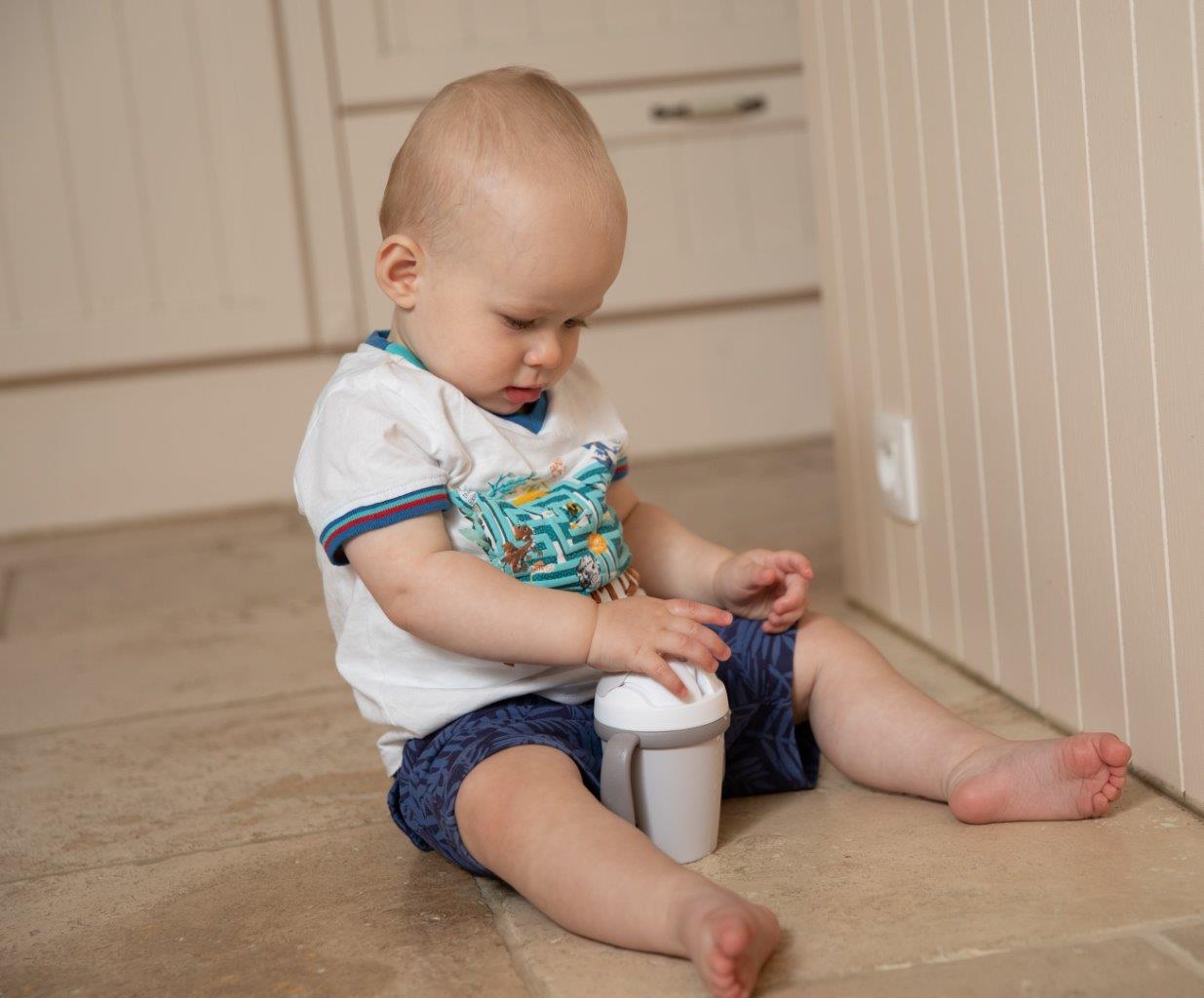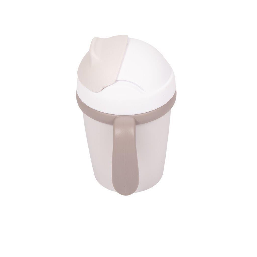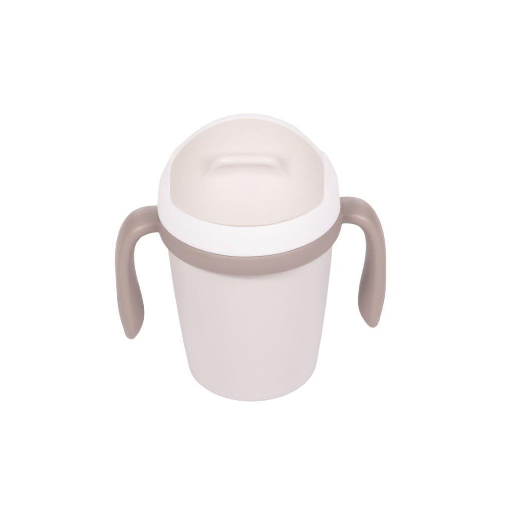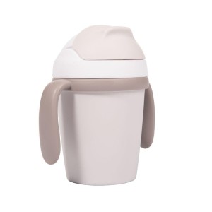 Kubek treningowy ma pojemność 250 ml. Jest to kubek do nauki samodzielnego picia z miękką silikonową słomką i systemem niekapiącym. Słomka jest całkowicie zdejmowana dla łatwego czyszczenia i zachowania idealnej higieny. Po przekręceniu górnej części kubka pokrywka zakrywa słomkę, blokuje się i jest szczelna. Dwa uchwyty na bokach sprawiają, że kubek jest łatwy do przenoszenia i utrzymania w małych rączkach.