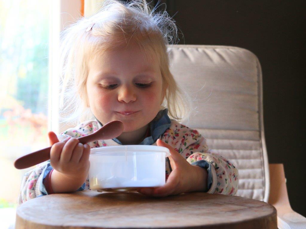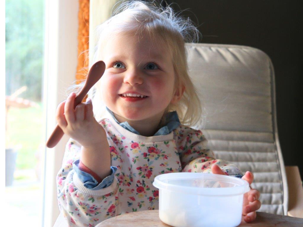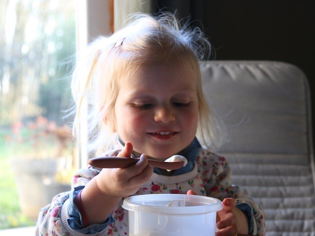 Łyżeczki leżą wygodnie w dłoni rodzica, ułatwiają zarówno karmienie jak i zapewniają dobry dostęp do słoiczka z jedzeniem.