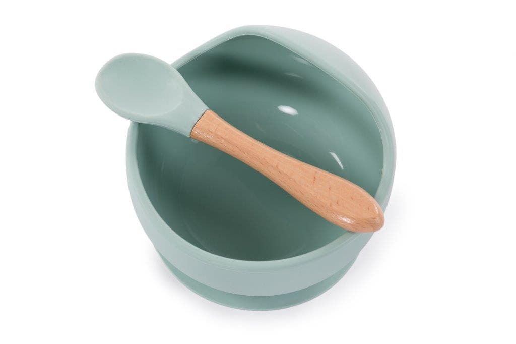 B-Silikonowa miska z przyssawką i łyżeczką blue mint