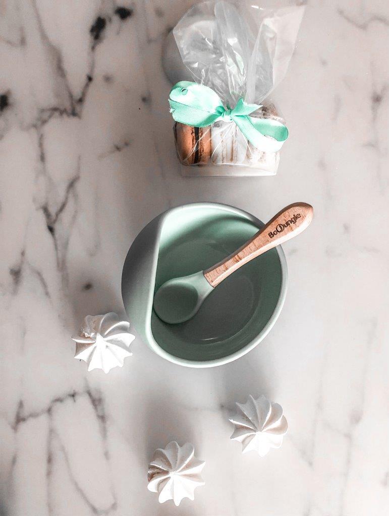 Ta wyjątkowa silikonowa, antypoślizgowa miseczka z przyssawką i dopasowaną łyżeczką z drewnianym uchwytem zapewnia dziecku możliwość samodzielnego jedzenia, bez konieczności trzymania talerza przez mamę lub tatę. Dzięki funkcjonalnej przyssawce miska nie może się poruszać i przemieszczać, nie spadnie lub nie zostanie zrzucona ze stołu. Jest stabilna i bezpieczna, nieoceniona w nauce samodzielnego jedzenia. Ten śliczny zestaw jest wykonany z wysokiej jakości,wytrzymałego 100% silikonu spożywczego, hipoalergicznego, antybakteryjnego, nie zawiera szkodliwego BPA, PVC, ftalanów.