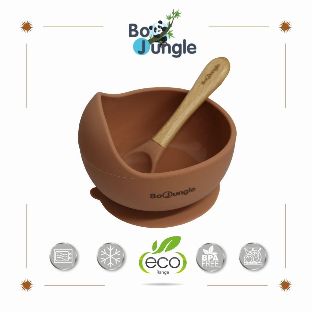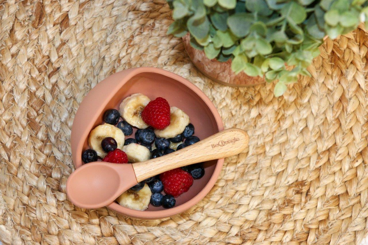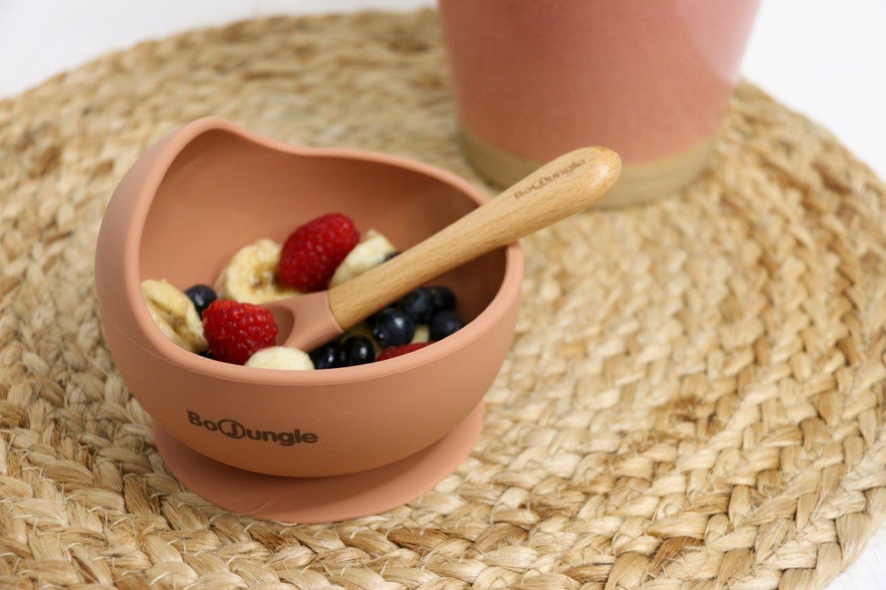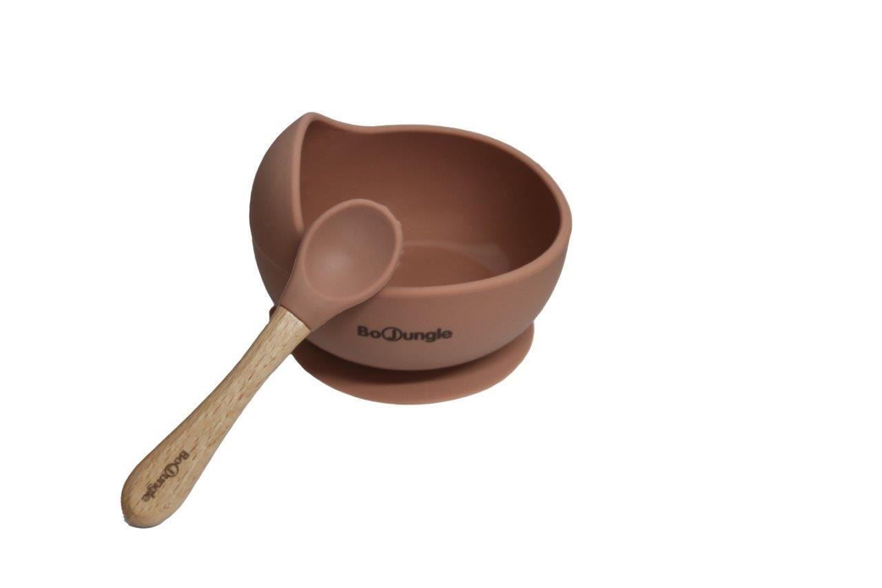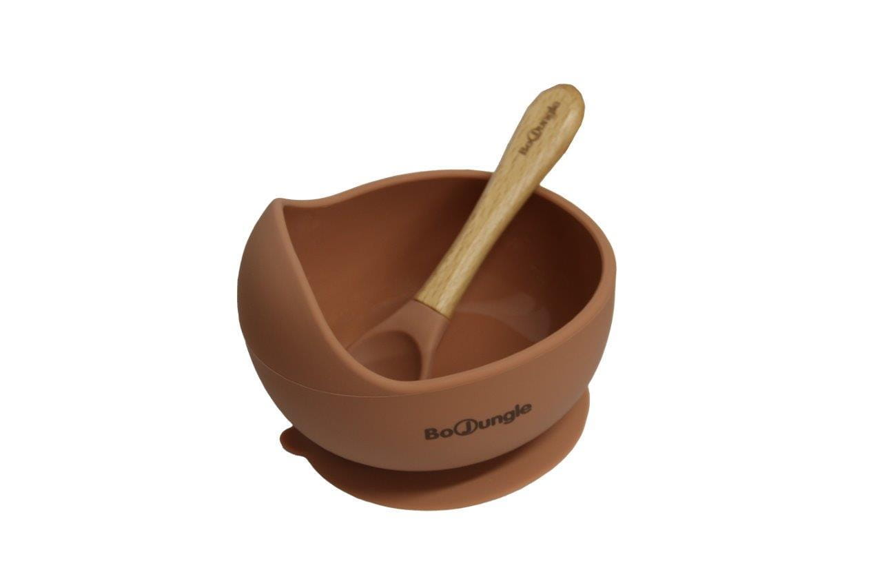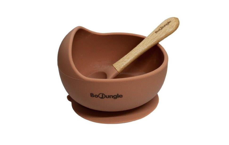 B-Silikonowa miska z przyssawką i łyżeczką terracotta