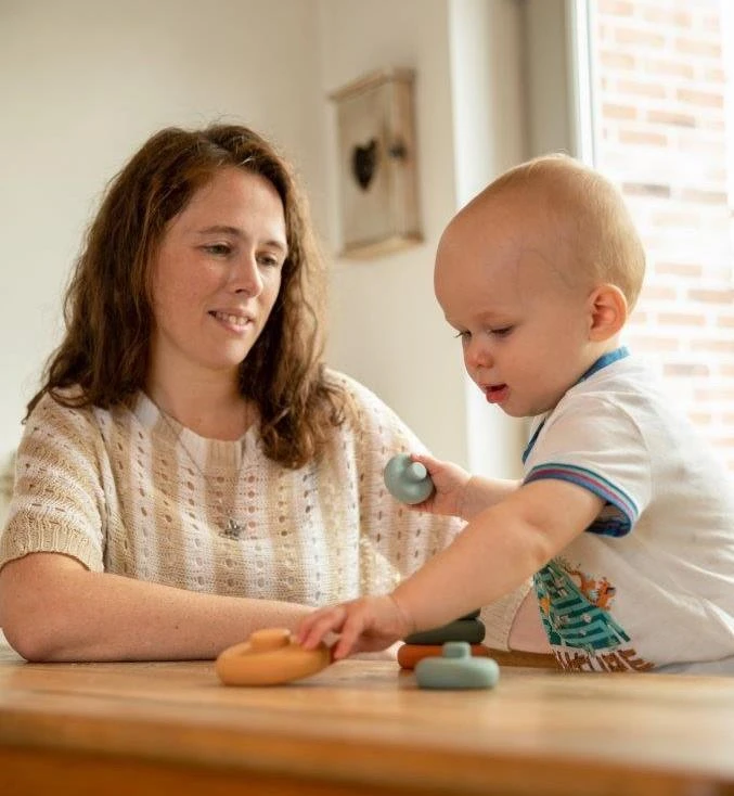 Pozwala odkryć różnice pomiędzy wielkością i kształtem dużym a małym. Jest inspirowana zabawą wg metody Montessori. Każda jej część może spełniać rolę silikonowego gryzaka, który pomaga koić swędzące dziąsła podczas ząbkowania.