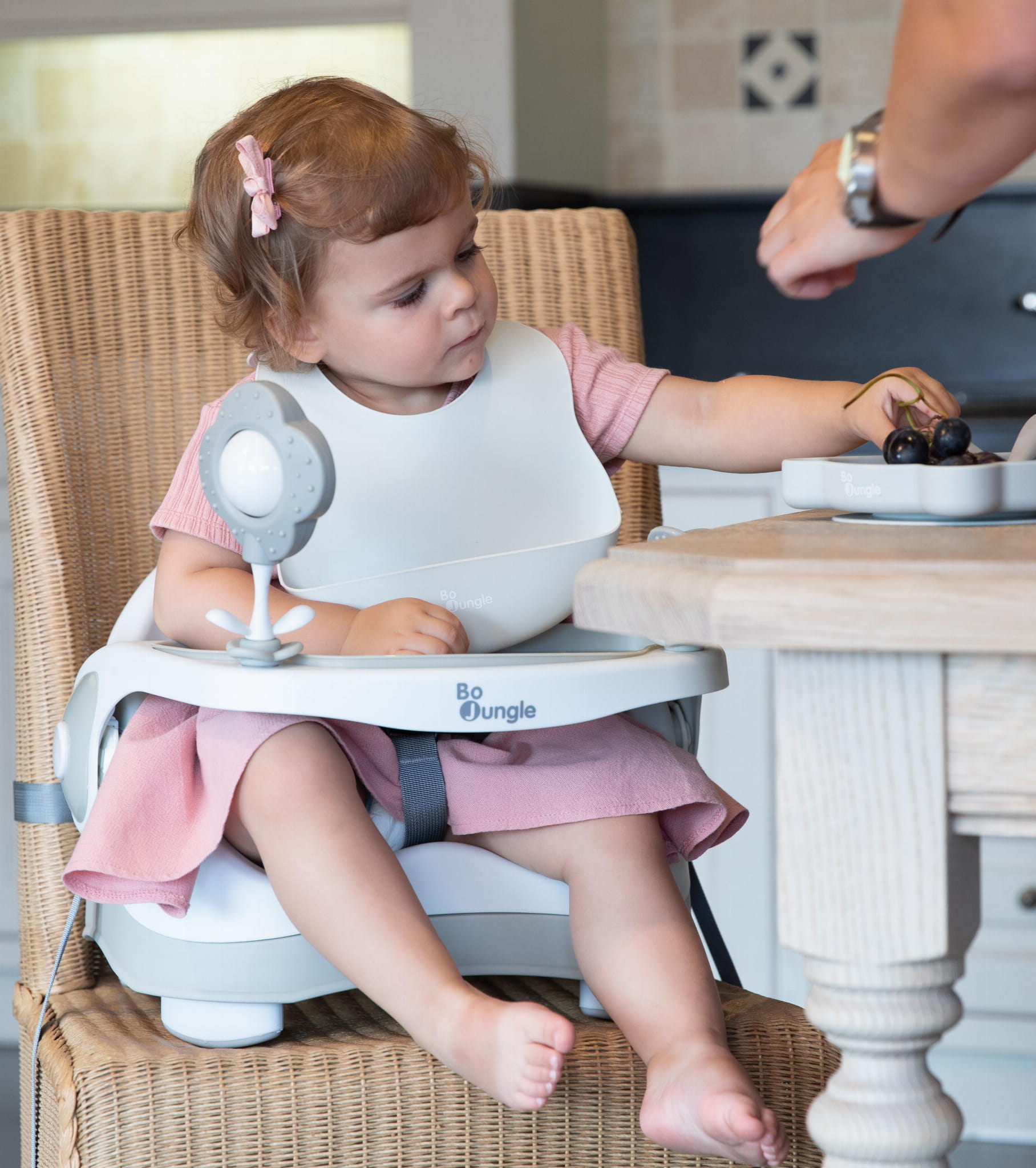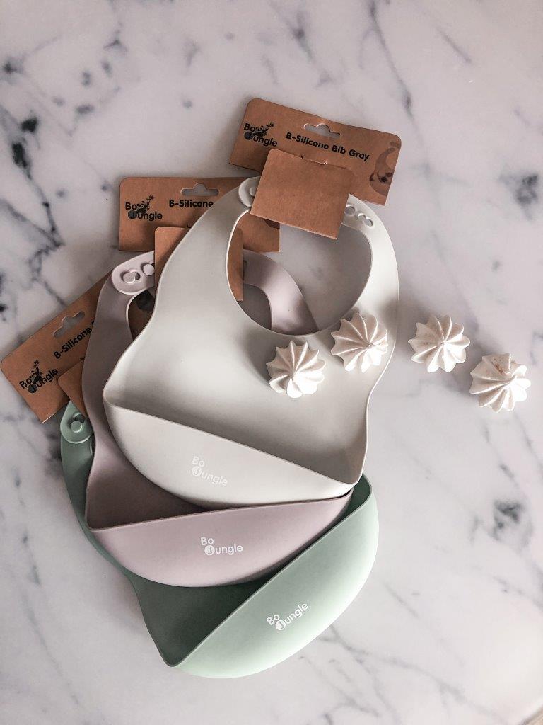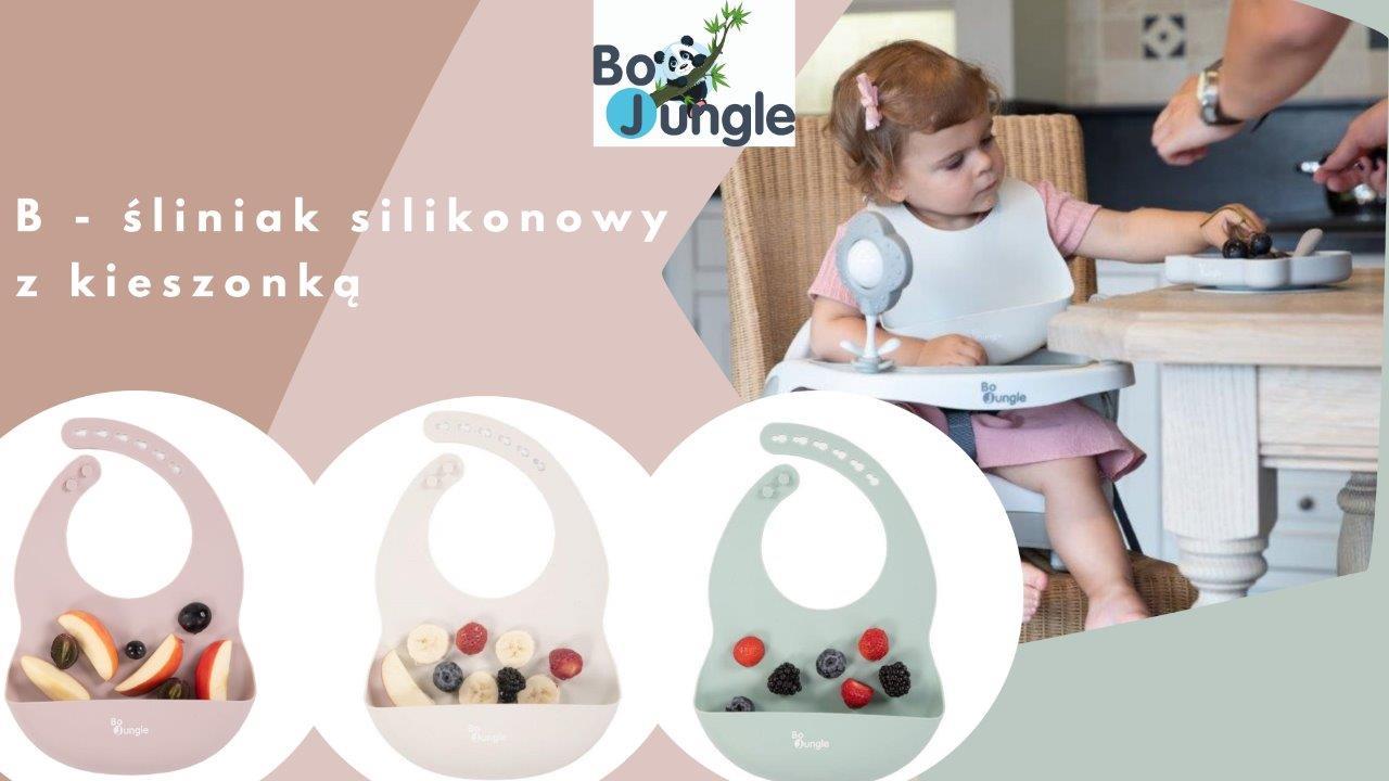 B-Śliniaczek silikonowy z kieszonką Grey