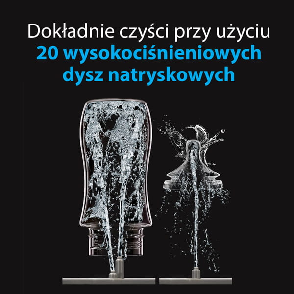 -Skutecznie myje za pomocą 20 wysokociśnieniowych strumieni natryskowych