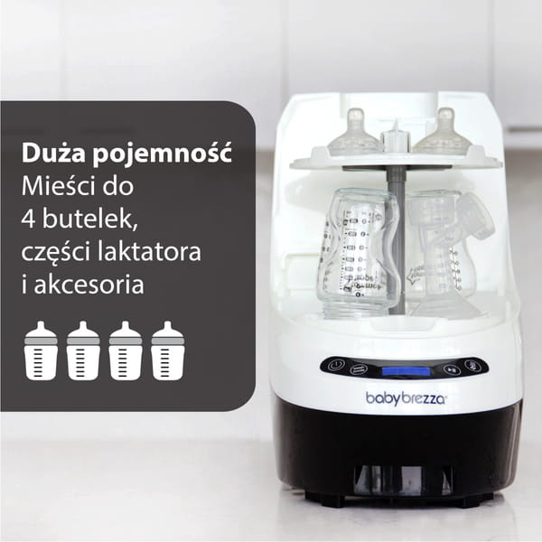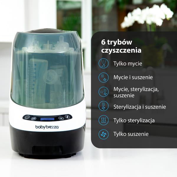 Bottle Washer Pro od Baby Brezza - Automatycznie myje, sterylizuje i suszy butelki, części laktatorów i kubki niekapki. Pożegnaj szczotki do butelek i uciążliwe mycie ręczne i powitaj przyszłość w czyszczeniu butelek.