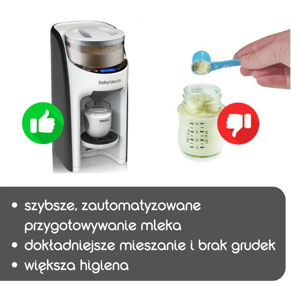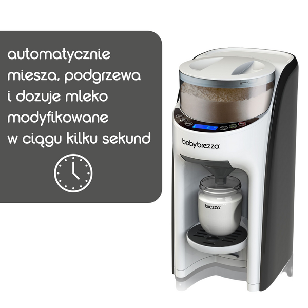 Formula Pro Advanced od Baby Brezza to rewolucyjny ekspres do mleka, który sprawi, że przygotowanie każdej butelki dla maluszka będzie szybsze i mniej stresujące. Maszyna miesza mleko modyfikowane z wodą i dozuje jednorodną formułę w wybranej temperaturze - bezpośrednio do butelki. Na stronie www.babybrezza.pl znajduje się lista przetestowanych mlek, które pogrupowane są w 10 kategorii, żeby jak najdokładniej dobrać doskonałe ustawienia Formula Pro Advanced do mleka z którego korzystacie, ogranicza to możliwość popełnienia błędu w dawkowaniu. Pożegnajcie rozsypane mleko na blacie kuchennym w środku nocy i płacz maluszka czekającego 5 min na butelkę - powitajcie Baby Brezza Formula Pro Advanced!