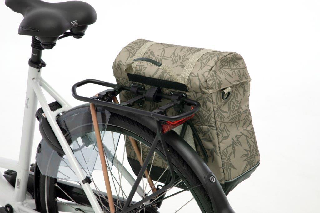 Alba Single jest wykonana z wodoodpornego poliestru. Klapa ładnie opada na sakwę, dzięki czemu jest wodoodporna i zapewnia wystarczającą ochronę przed lekkim deszczem. Jeśli jednak chcesz, aby chronił Twój sprzęt przed silniejszymi opadami deszczu, zalecamy zakup osłony przeciwdeszczowej New Looxs do sakw na jeden rower. Wszystkie sakwy są wodoodporne, gdy są chronione folią przeciwdeszczową. Atrakcyjny wygląd Główna komora sakwy jest bardzo obszerna, więc pomieści więcej, niż mogłoby się wydawać na pierwszy rzut oka. Dodatkowo sakwa posiada dodatkową kieszeń na suwak pod klapą z przodu. W głównej komorze znajdują się dwa małe zatrzaski. Modny wzór sakw sprawia, że ta sakwa rowerowa jest również bardzo atrakcyjna. Wszystkie te cechy sprawiają, że Alba nadaje się na małe zakupy, wycieczki rowerowe do biura lub szkoły i oczywiście jest świetnym dodatkiem do przejażdżek rekreacyjnych. Sakwa rowerowa jest solidna i dobrze zachowuje swój kształt dzięki plastikowym usztywniaczom, które wsuwają się w spód i tył torby, dzięki czemu nie traci kształtu, co ułatwia przechowywanie rzeczy w torbach