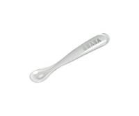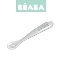 Ergonomiczna pierwsza łyżeczka dziecka francuskiej marki BEABA. Łyżeczka w jasnoszarym kolorze z transparentnymi brzegami. Miękka końcówka wykonana została z ultra elastycznego silikonu, w pełni bezpiecznego dla delikatnych dziąseł maluszka. Jej kształt został zaprojektowany tak, by ułatwiał malcowi przejście ze smoczka na łyżkę. Długi uchwyt sprawia, że łyżeczka jest bardzo wygodna do trzymania przez osobę dorosłą podczas karmienia dziecka, nadaje się również do podawania pokarmów ze słoiczka. Łyżka łatwo się czyści, można ją myć ręcznie lub w zmywarce.