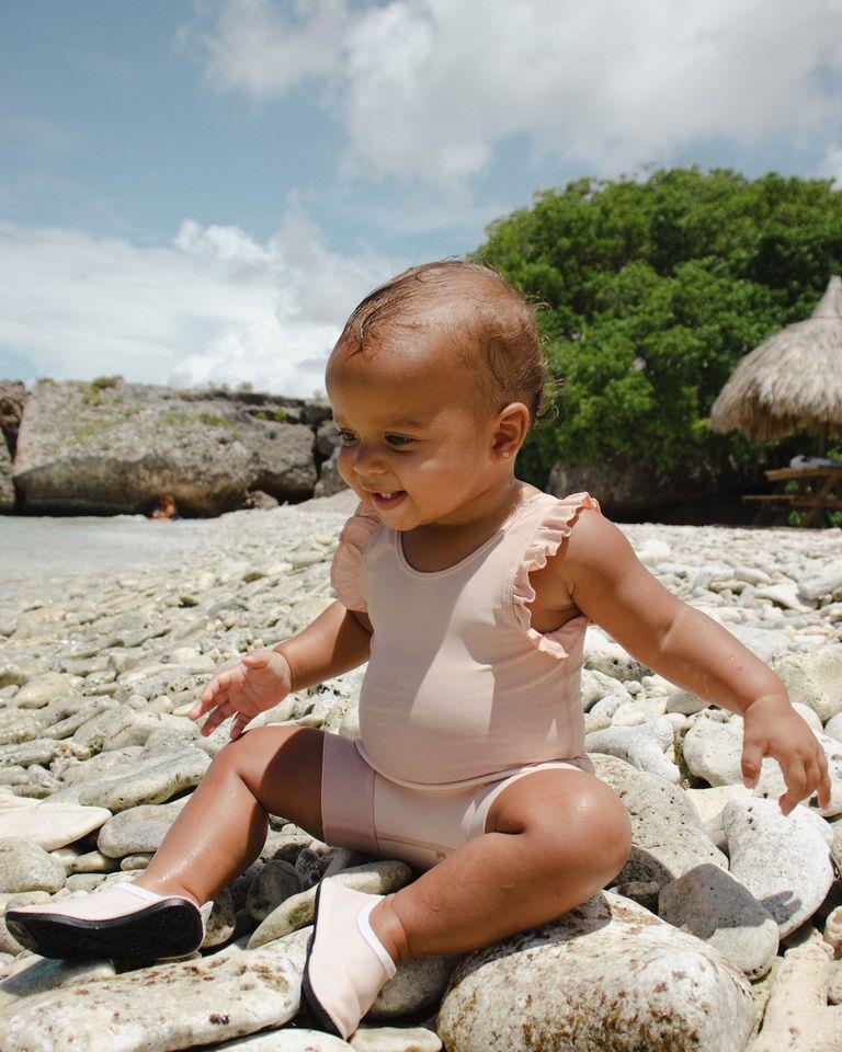 Buty kąpielowe są łatwe do zakładania i zdejmowania przez dziecko, ponieważ są elastyczne i mają dobrą antypoślizgową podeszwę, która pomaga zapobiegać poślizgnięciu się dziecka.