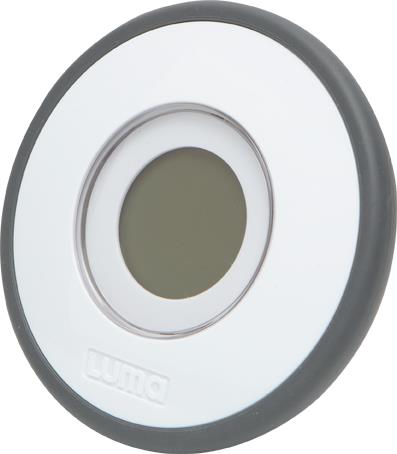 Cyfrowy termometr do kąpieli LUMA aktywuje się automatycznie, gdy tylko wejdzie w kontakt z wodą i unosi się, dzięki czemu można prawidłowo widzieć wyświetlacz.