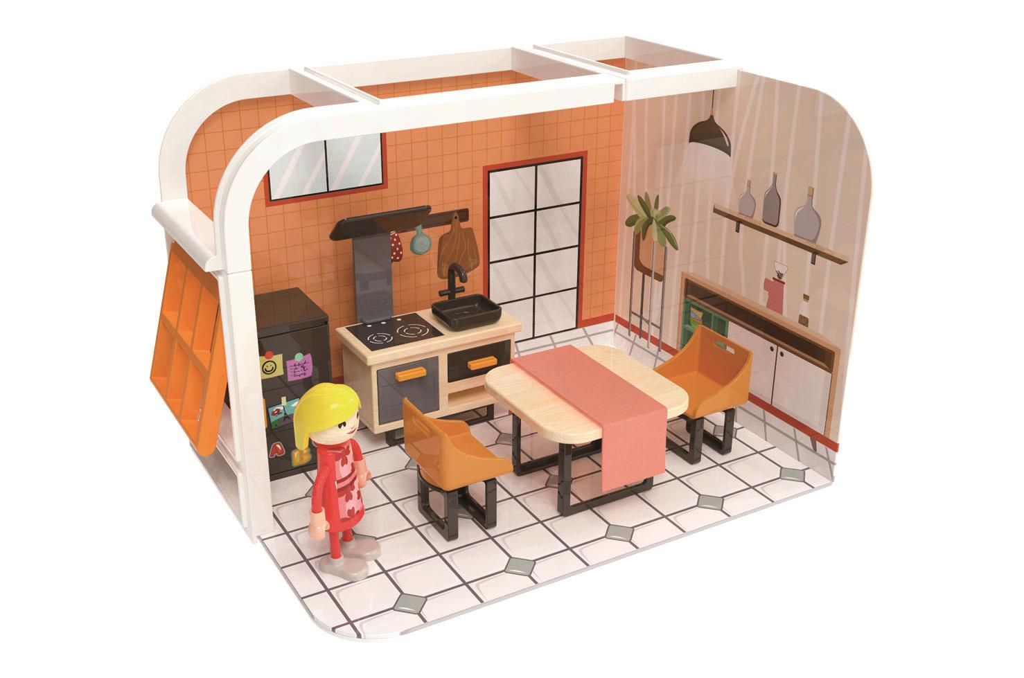 Sprawdzi się idealnie jako prezent dla dziecka. Można skompletować cały domek: w ofercie jest także salon, łazienka i sypialnia.