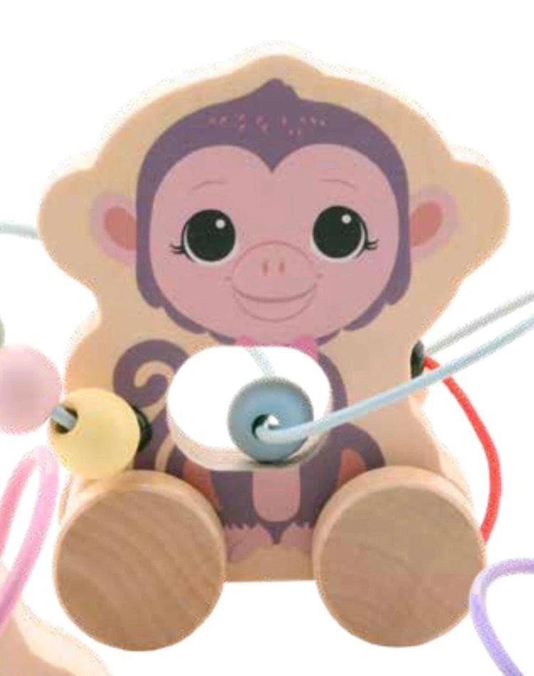 Drewniana zabawka na kółkach z przeplatanką MAŁPKA
