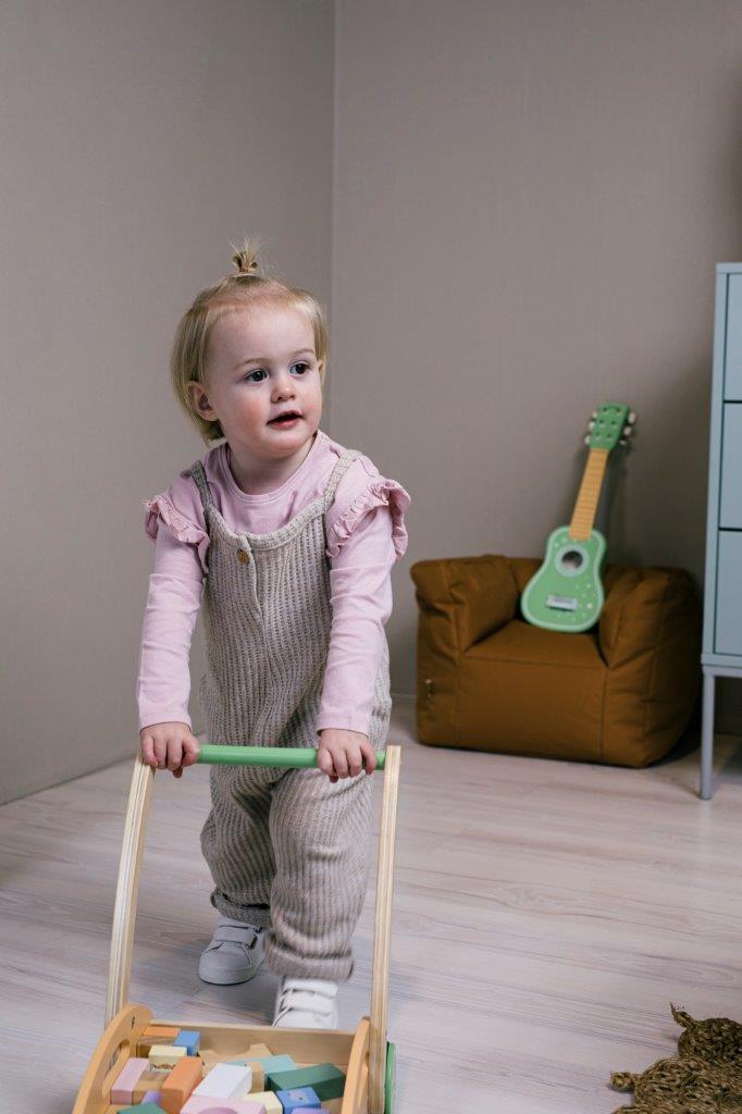 Przepiękny, pastelowy drewniany wózek dopchania z klockami marki JOUECO. Dzięki tej zabawce nauka chodzenia będzie znacznie łatwiejsza i przyjemniejsza dla Twojego maluszka. Wózek posiada stabilną rączkę i w komplecie zestaw 34 klocków o różnych kształtach i wzorach: kwadraty, prostokąty, trójkąty w pastelowych kolorach. Są one doskonałe do tworzenia niepowtarzalnych budowli i ćwiczenia małej motoryki. Z wózkiem od JOUECO dobra zabawa jest gwarantowana!