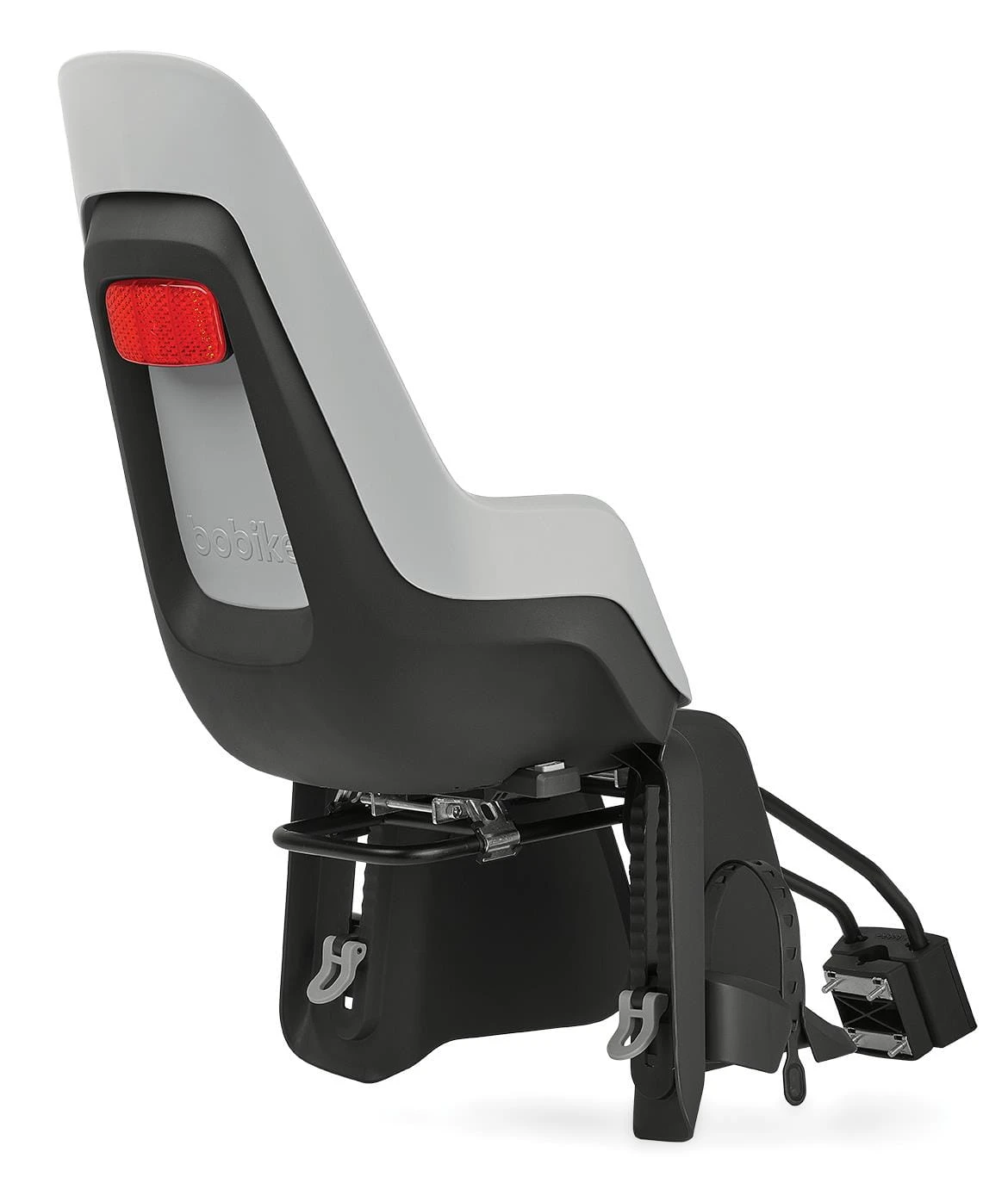 Bobike ONE Maxi to fotelik rowerowy, który można zamontować z tyłu roweru i który jest odpowiedni dla dzieci w wieku od około 9 miesięcy do 6 lat lub o wadze ciała 22 kg. Fotelik ONE maxi 1P & E-BD jest dostarczany z bazą na bagażnik Click & Go w połączeniu z uchwytem na ramę 1P. Ten typ mocowania jest odpowiedni dla rowerów bez bagażnika lub dla rowerów z bagażnikiem, który nie jest zgodny z normą bezpieczeństwa EN 1487.
