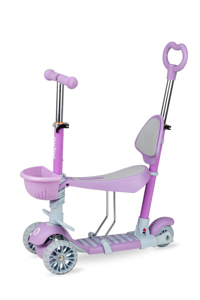 Scooter 5w1 to innowacyjna hulajnoga dla dzieci od 1 roku życia do 6 lat i maksymalnym obciążeniu 50 kg. Idealne rozwiązanie dla aktywnych dzieci, które są w ciągłym ruchu. Zapewnisz swojemu dziecku nie tylko świetną zabawę, ale również aktywność na świeżym powietrzu, która jest niezwykle ważna dla każdego smyka. Nowoczesny design i doskonałe materiały sprawiają, że hulajnoga jest niezwykle lubianym i popularnym modelem.