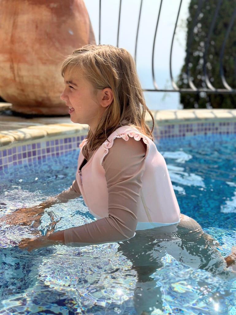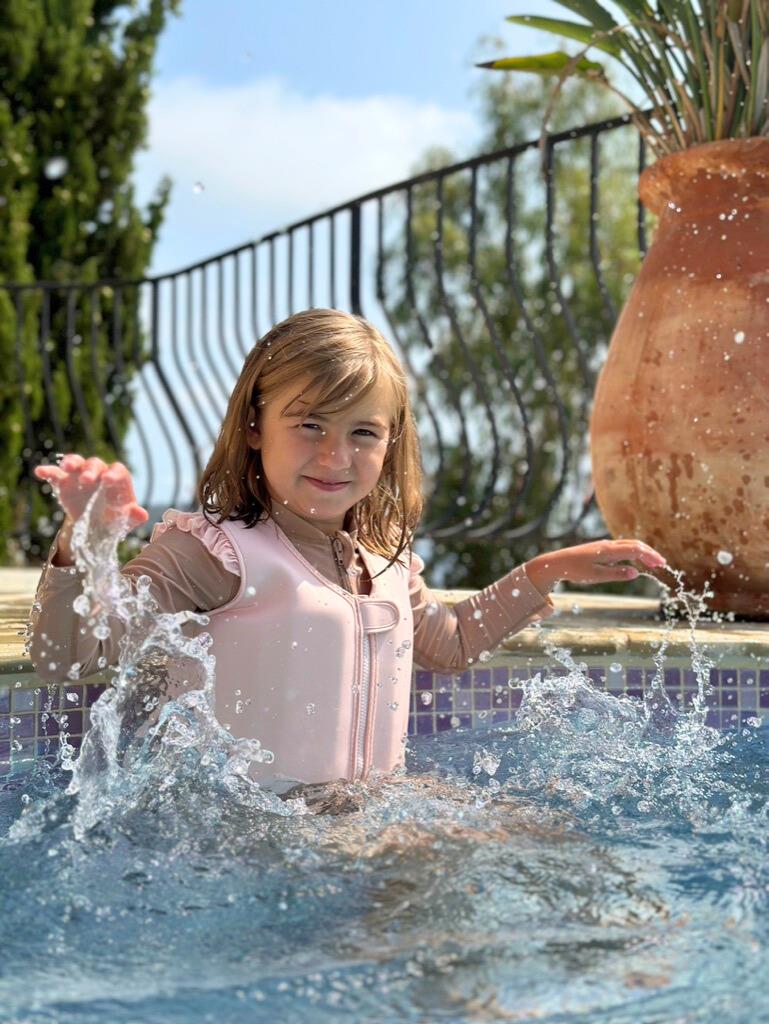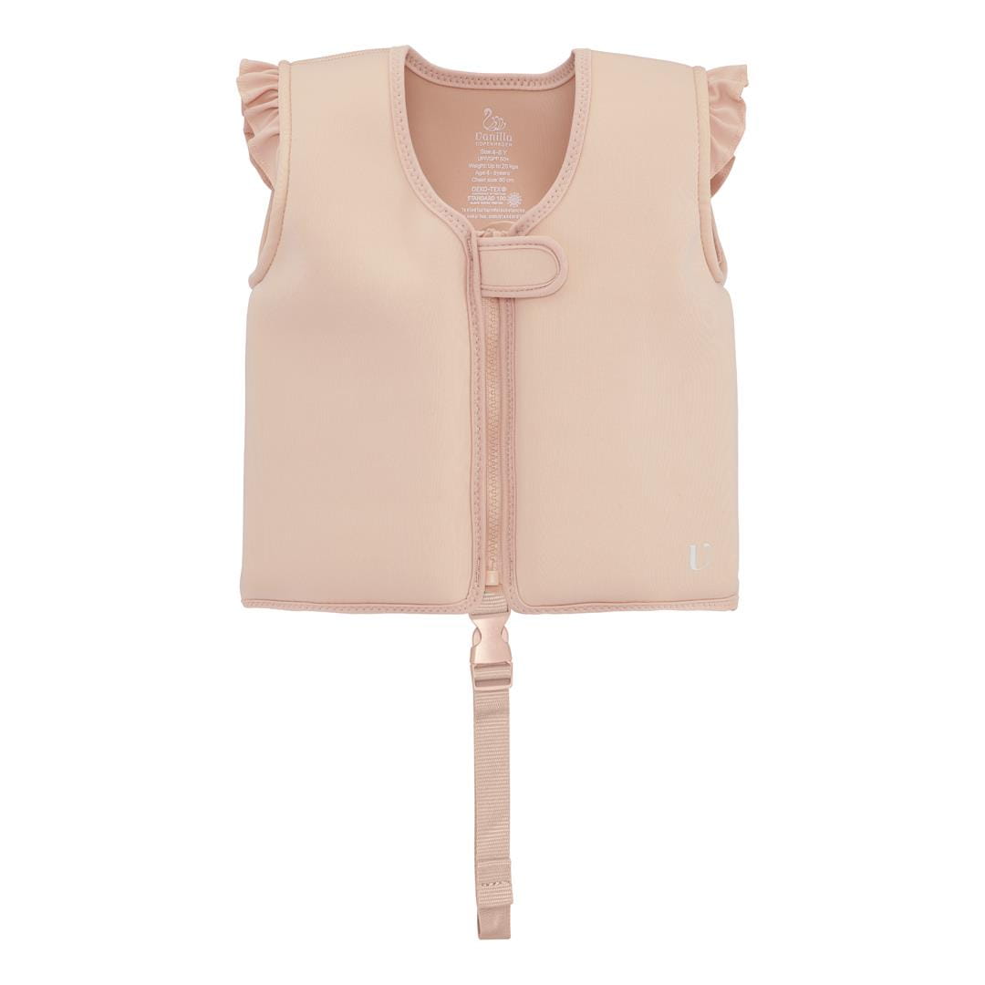 Neoprenowa kamizelka wypornościowa do pływania marki Vanilla Copenhagen w uroczym kolorze angielskiego różu z regulowanym paskiem dla najmłodszych sprawdzi się idealnie podczas nauki pływania i zabawy, a maluchy w kamizelce będą pływać jak małe rybki w wodzie.