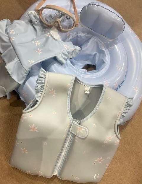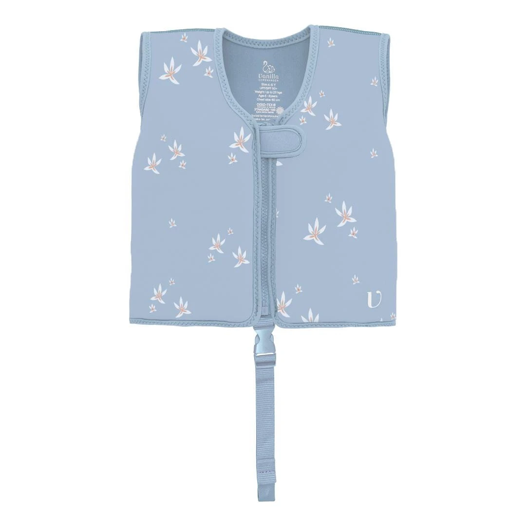 Neoprenowa kamizelka wypornościowa do pływania marki Vanilla Copenhagen w urocze lilie z regulowanym paskiem dla najmłodszych sprawdzi się idealnie podczas nauki pływania i zabawy, a maluchy w kamizelce będą pływać jak małe rybki w wodzie.