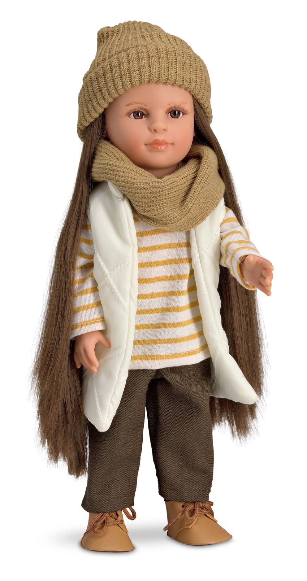 Pachnącą delikatnie wanilią Nina 42117 uzupełnia wyjątkową kolekcję luksusowych, klasycznych lalek hiszpańskich Magic Baby. Brunetka o długich gęstych, modnie stopniowanych włosach, to wspaniała towarzyszka zabaw dla dziewczynek w wieku od lat 3. 42- centymetrowa lala zachwyca stylowym, casualowym outfitem na chłodniejsze dni i piękną twarzyczką z lekko zarumienionymi policzkami i zgrabnym noskiem. Brązowe oczy zostały podkreślone subtelnie namalowanymi brwiami oraz długimi rzęsami. Nina 42117 od firmy LaMagik została tak zaprojektowana, aby każda miłośniczka lalek mogła stworzyć wiele niepowtarzalnych fryzur. Ruchoma głowa, ręce i nogi ułatwiają zdejmowanie zapinanych na rzep ubranek oraz zmianę pozy leżącej lub siedzącej zabawki.