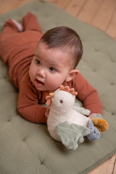 Balansująca grzechotka Little Farm 20 cm od Little Dutch. Ten uroczy kurczaczek wykonany jest z mięciutkiego, przyjemnego pluszu. Możesz go odepchnąć, ale zawsze wraca po więcej zabawy. Balansujący kurczaczek chwieje się z boku na bok i po popchnięciu wydaje grzechoczący dźwięk. Jest zaprojektowany w taki sposób, by pomagać ćwiczyć umiejętności motoryczne Twojego maluszka w trakcie zabawy. Świetna, rozwijająca zabawa gwarantowana! Stanowi doskonałe uzupełnienie do pozostałych produktów z kolekcji Little Farm. Wspaniały pomysł na prezent.