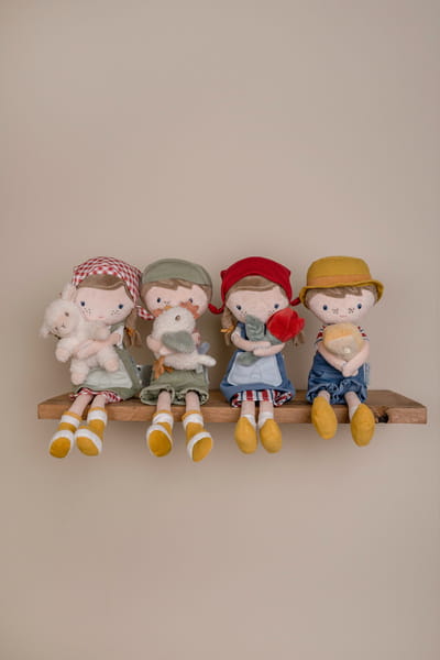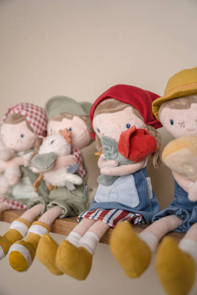 Farmerka Rosa z owieczką 35 cm od Little Dutch. Poznaj uroczą farmerkę Rosę. Rosa uwielbia pokazywać swoją farmę i przeżywać na niej wiele niesamowitych przygód. Ma na sobie piękną sukienkę, fartuszek, buciki i kapelusz. Razem ze swoją najlepszą przyjaciółką - małą owieczkę nie może doczekać się wspólnej zabawy z Twoim dzieckiem. Dzięki rzepom na rączkach może mieć ją zawsze przy sobie. Ta pluszowa przytulanka o wysokości 35cm zapakowana jest w kartonowe pudełko z rączką. Lalka wykonana jest miękkich i przyjemnych materiałów i będzie wspaniałym prezentem dla każdego dziecka. Stanowi świetnie uzupełnienie do pozostałych laleczek od Little Dutch.