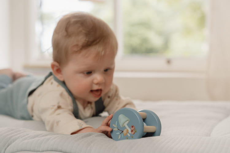 Grzechotka drewniana Forest Friends FSC od Little Dutch. Urocza zabawka z pięknymi ilustracjami z kolekcji Forest Friends oraz kuleczką w środku, która grzechocze przy poruszaniu. Idealna dla dzieci od około 3 miesiąca życia. Grzechotka doskonale zaprojektowana dla małych rączek i pomaga rozwijać koordynację ręka-oko. Sprawdzi się też przy raczkowaniu, dziecko może turlać grzechotkę przed sobą i podążać za nią. Stanowi uzupełnienie dla pozostałych zabawek z kolekcji Forest Friends od Little Dutch.