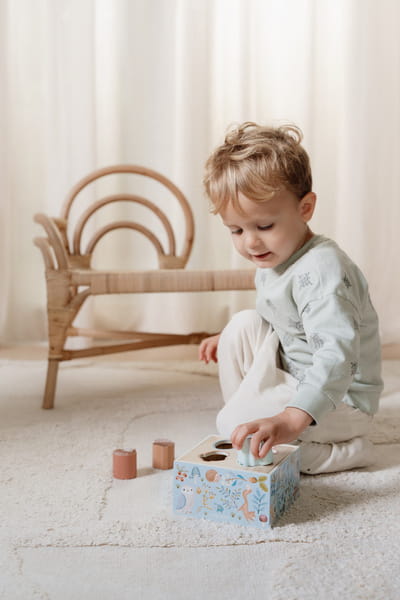 Drewniany sorter Forest Friends FSC od Little Dutch. Podczas zabawy w sortowanie Twój maluch uczy się rozpoznawać oraz dopasowywać kształty i kolory, doskonali motorykę małych rączek. Sorter jest wykonany z wytrzymałego drewna z pięknymi motywami kolekcji Forest Friends. Kształty – grzyb, żołądź i liście – są zaprojektowane tak, aby małe rączki mogły je z łatwością chwycić i włożyć do odpowiedniego otworu. To klasyczna zabawka, która uczy i bawi. Sorter jest świetnym pomysłem na prezent i doskonale uzupełnienia pozostałe zabawki z kolekcji Forest Friends od Little Dutch.