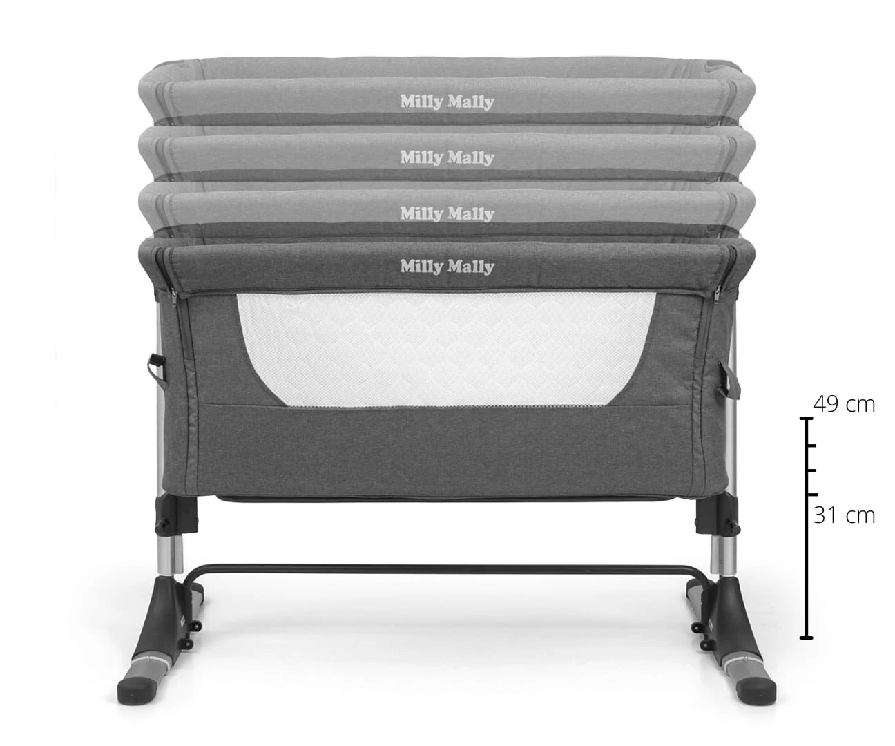 Side by Side może pełnić funkcję dostawki do łóżka i samodzielnego łóżeczka turystycznego. Czterostopniowa regulacja umożliwia dopasowanie wysokości dostawki do większości łózek, co jest bardzo praktyczne i wygodne. Specjalne pasy do mocowania zapewniają bezpieczeństwo przy korzystaniu z funkcji łóżeczka dostawnego. Łóżeczko wyposażone zostało w solidne nogi, zapewniające stabilność przy korzystaniu z każdej funkcji. Opuszczany bok z siatką zapewnia odpowiednią cyrkulację powietrza, umożliwia łatwiejsze pielęgnowanie niemowlaka, pozwala na bliskość rodziców w momencie, gdy dziecko się przebudzi, co sprawia, że maleństwo szybciej się uspokaja i lepiej śpi.