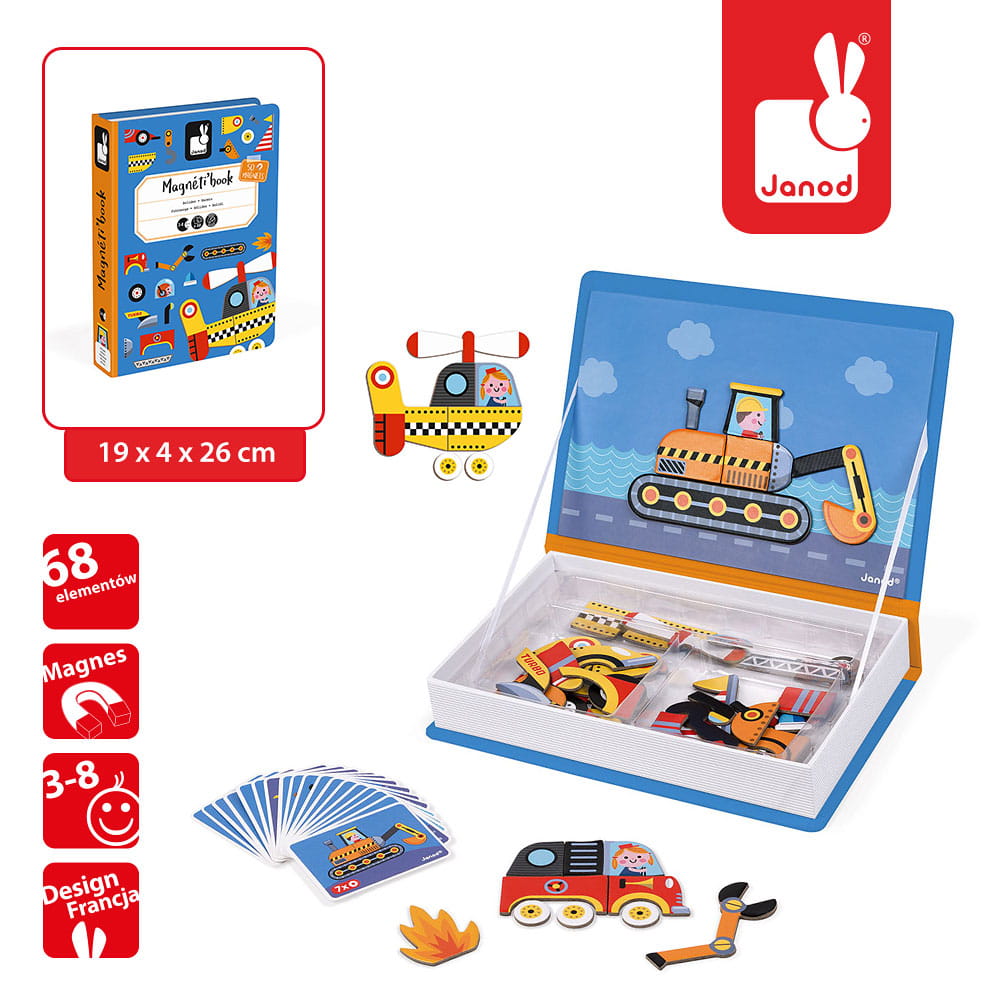 Magnetyczna układanka Pojazdy Magnetibook kolekcja 2018, Janod