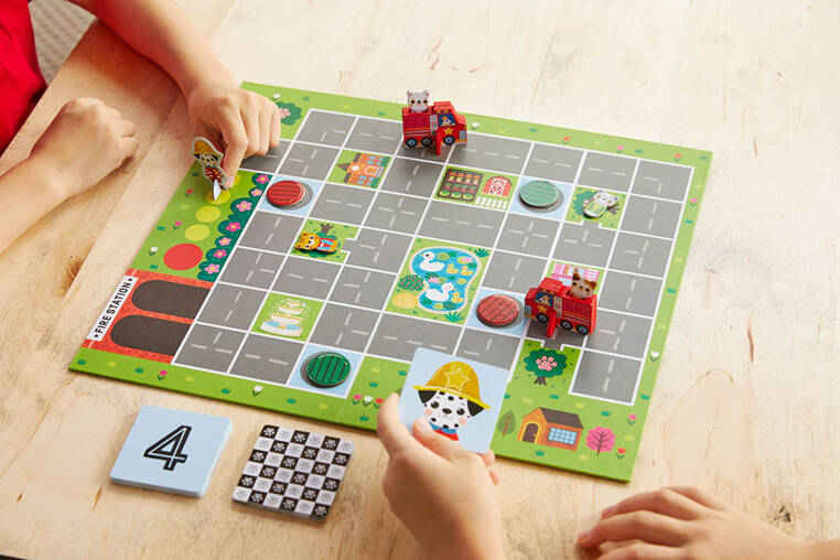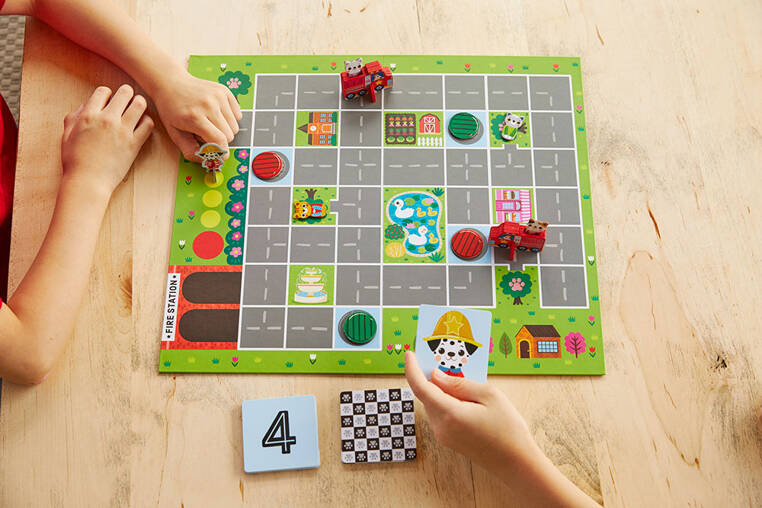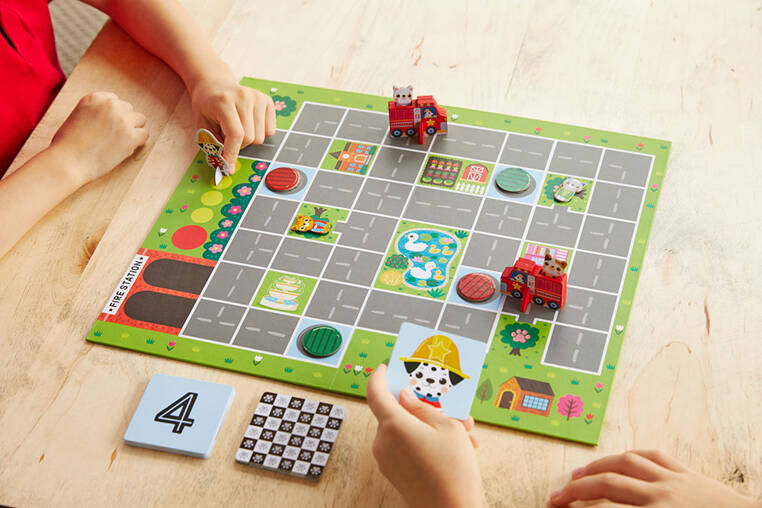 Gra planszowa Straż pożarna na ratunek! amerykańskiej marki MUDPUPPY składa się z planszy do gry z mapą uliczek i skwerów, 27 kart z ruchami, 4 żetonów z sygnalizacją świetlną, 4 żetonów z postaciami kotków, 2 drewnianych wozów strażackich i 1 komendanta straży pożarnej. Zadaniem graczy jest uratowanie kotków, które utknęły na drzewach oraz pomoc wozom strażackim wrócić do remizy, zanim dotrze tam komendant. Sygnalizacja świetlna może w tym pomóc lub przeszkodzić. Zabawa polega na wspólnym działaniu dla osiągnięcia celu. W grze może brać udział 2 lub więcej osób. Uczy ona planowania i cierpliwości, a przy okazji trenuje szybkość reakcji i spostrzegawczość. Gra zawiera instrukcję. Zapakowana jest w estetyczne kartonowe pudełko z grafiką wozu strażackiego. Idealnie nadaje się na prezent.