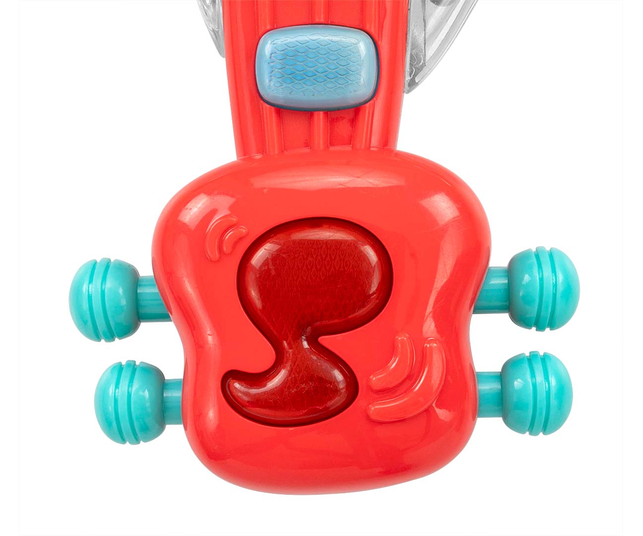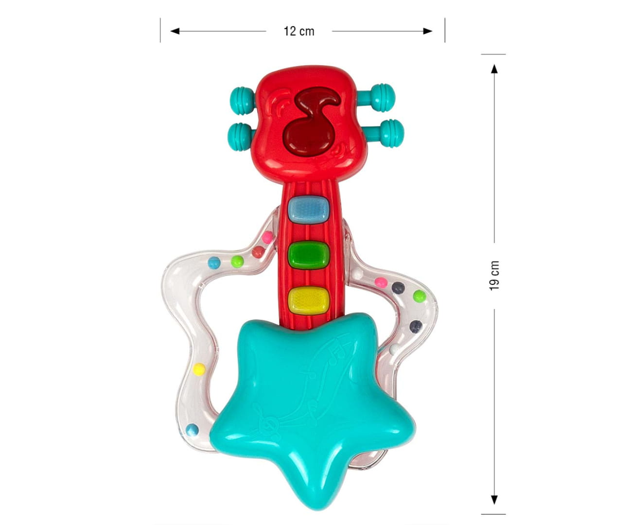Prezentujemy muzyczną gitarę, która wygrywa 6 ekscytujących melodii oraz posiada efekty świetlne. Naciskając przycisk w kształcie nutki, znajdujący się na górze, można zmienić tryby z muzycznego na tryb instrumentu. Nasza gitara posiada łatwy do złapania przez dziecko uchwyt, jest on przeźroczysty aby dziecko mogło zainteresować się umieszczonymi w środku kolorowymi kółeczkami, które przy każdym ruchu przemieszczają się, może służyć jako grzechotka. Każdy element gitary by Milly Mally jest przemyślany i zaprojektowany aby wesprzeć prawidłowy rozwój dzieci. Na gryfie gitary umieszczone są 3 przyciski muzyczne, które mają kształtować ciekawość dziecka . Jest to zabawka- grzechotka stymulująca jego zmysły co jest ważne w początkowym etapie rozwoju dziecka. Dziecko posługując się tą zabawką dostaje bodźce, pobudzona jest motoryka mała, czyli rozwija kontrolowane i precyzyjne ruchy łącznie z mimiką twarzy, rozwija się u niemowlaka wrażliwość na dźwięki. Kolejną cenną zaletą jest koordynacja wzrokowo-ruchowa zabawka pomaga dzieciom w kształtowaniu silniejszego poczucia własnej wartości, a to zwiększa ich samoocenę.