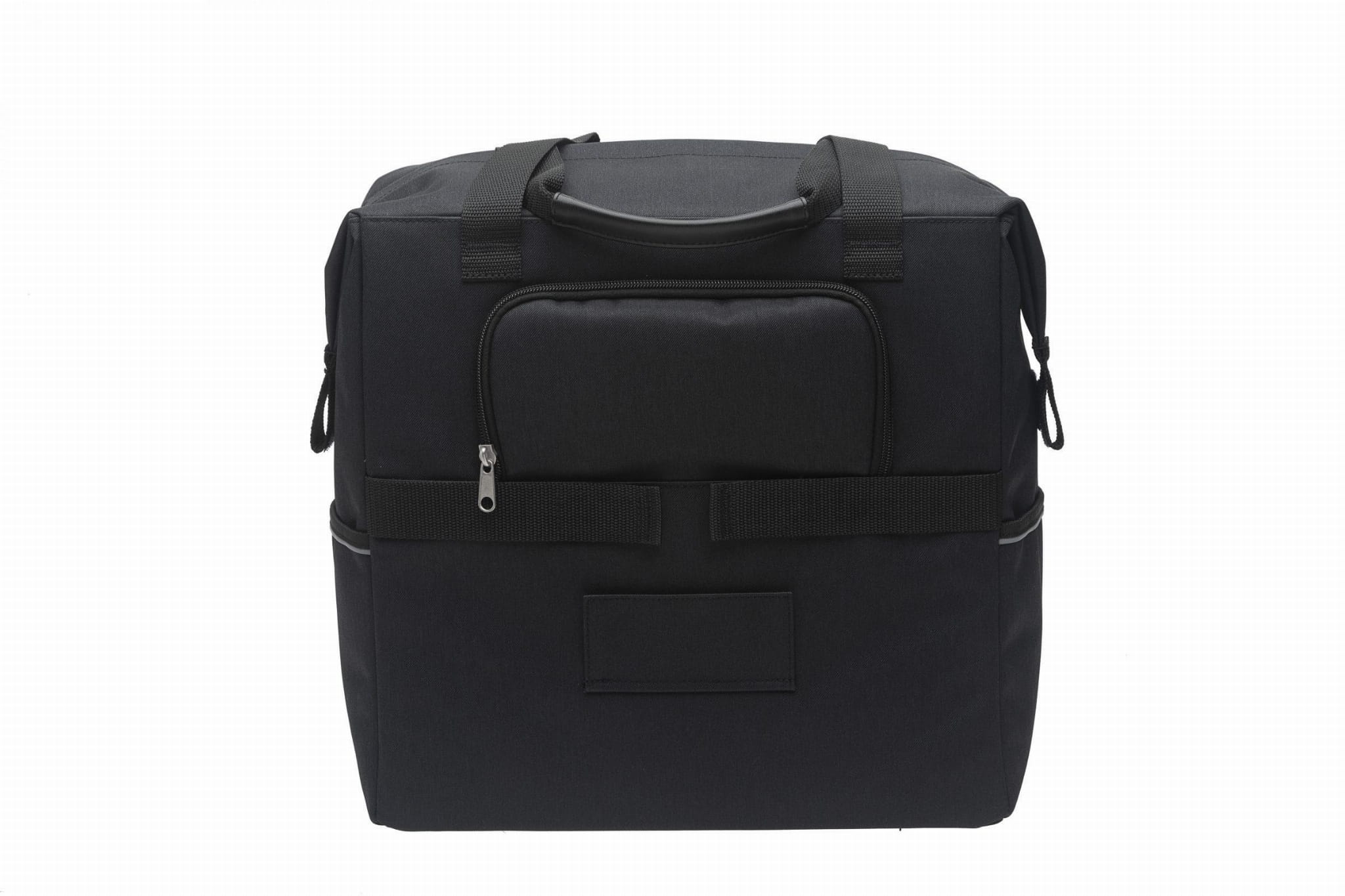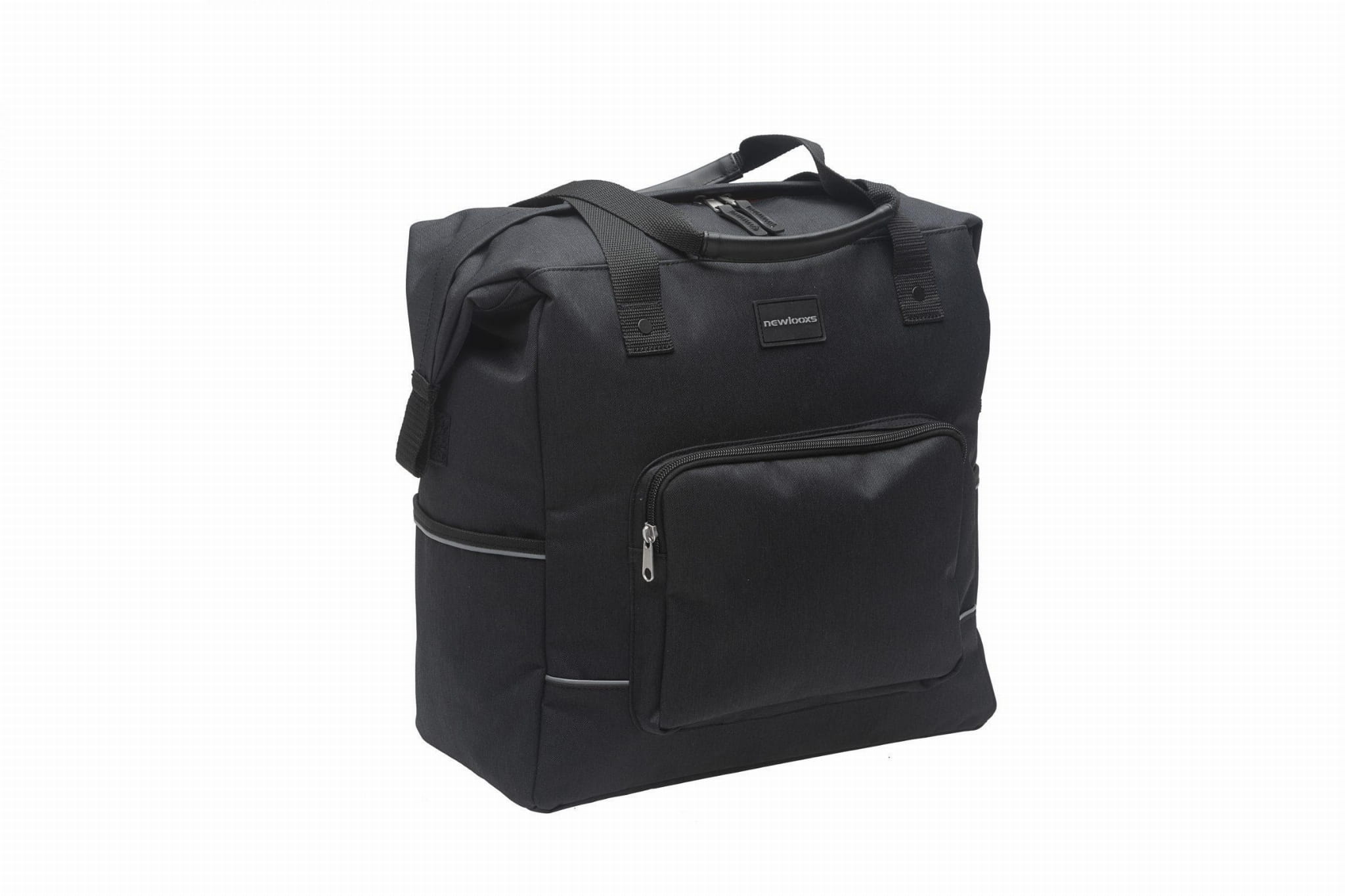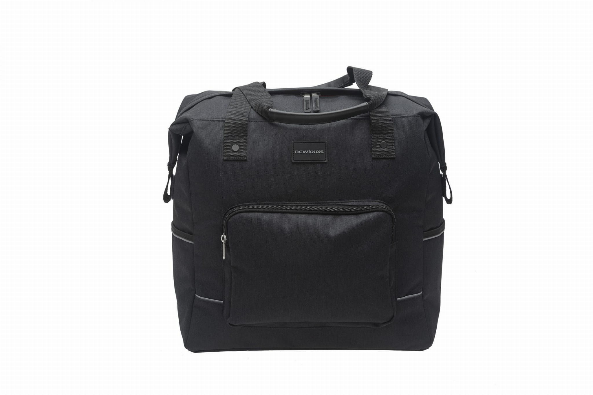 Torba na zakupy wykonana z wodoodpornego poliestru. Pasuje do rowerów elektrycznych. Zamknięcie na suwak. Główna komora z dodatkową przednią kieszenią i dwiema bocznymi kieszeniami. Haczyki rowerowe w kieszeni na suwak. Alternatywnie sakwę można przymocować do bagażnika przedniego za pomocą rzepów. Elementy odblaskowe z dwóch stron.