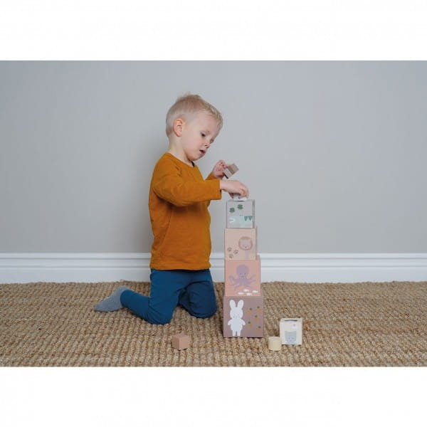 Edukacyjna piramida sorter kształtów to ponadczasowa propozycja dla najmłodszych dzieci, zabawka którą pokocha każde dziecko. Subtelne, naturalne kolory oraz niezwykła estetyka wykonania zachęcają do zabawy każdego malucha. Piramida – sorter kształtów to świetne połączenie zabawy i nauki, ta edukacyjna zabawka składa się z pięciu kostek, które możemy wkładać jedna w drugą lub ustawiać na sobie budując wieżę, każda z kostek posiada kolorowe postaci zwierząt, oraz cyfry od jednego do pięciu. Ta edukacyjna piramida pełni również funkcję sortera kształtów, gdyż w każdej kostce jest wycięty kształt, i do niego należy dopasować jeden z pięciu drewnianych klocków. Ta edukacyjna piramida wspomaga rozwój małej motoryki, ćwiczy koordynację ręka-oko a przede wszystkim zapewnia świetną zabawę i jest stylowym dodatkiem dekoracyjnym wyposażenia dziecięcych wnętrz.Edukacyjna piramida sorter Jabadabado zapewnia:- rozwój koordynacji wzrokowo-ruchowej-ćwiczy sprawność małych rączek-wspomaga rozwój motoryki małej- rozwija wyobraźnię, uczy kreatywnego myślenia- idealna do nauki liczenia, rozróżniania kształtów oraz poznawania wielkości i kolorów- daje wiele możliwości kreatywnej zabawyNa każdym z boków układanki (kostek) umieszczone są różne atrakcje:- cyfry od 1 do 5, obrazki na kostkach ilustrują ilość zgodną z cyfrą na drugim boku kostki -kolorowe postaci zwierząt (miś, wieloryb, słoń, flaming, pies)-otwory sortera i pięć klocków (kółko, trójkąt, kwadrat, pięciokąt, gwiazdka) Kostki wykonane z grubej lakierowanej tektury, idealne do budowania i burzenia bez ryzyka uderzenia się. Wiek: 18+mscWymiary: 12 x 12 x 12 cmWymiary opakowania: 26 x 13 x 12 cmMateriał: kostki – gruba tektura,Klocki – naturalne drewnoJabadabado to szwedzka firma istniejąca na rynku od 1993 roku specjalizująca się w projektowaniu i produkcji zabawek drewnianych, elementów wyposażenia pokoi dziecięcych. Wszystkie produkty Jabadabado cechuje oryginalny design, piękna kolorystyka i niezwykle staranne wykonanie. Wszystkie zabawki marki Jabadabado stworzone są z myślą o dzieciach i pobudzają do kreatywnej zabawy.