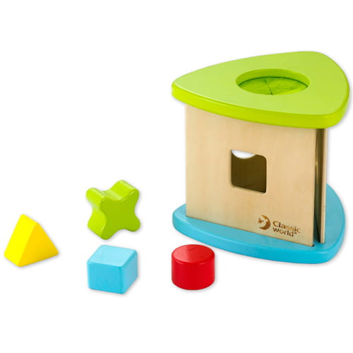 Sorter, którego celem jest nauka podstawowych kształtów, i poprawa zdolności manualnych dziecka.