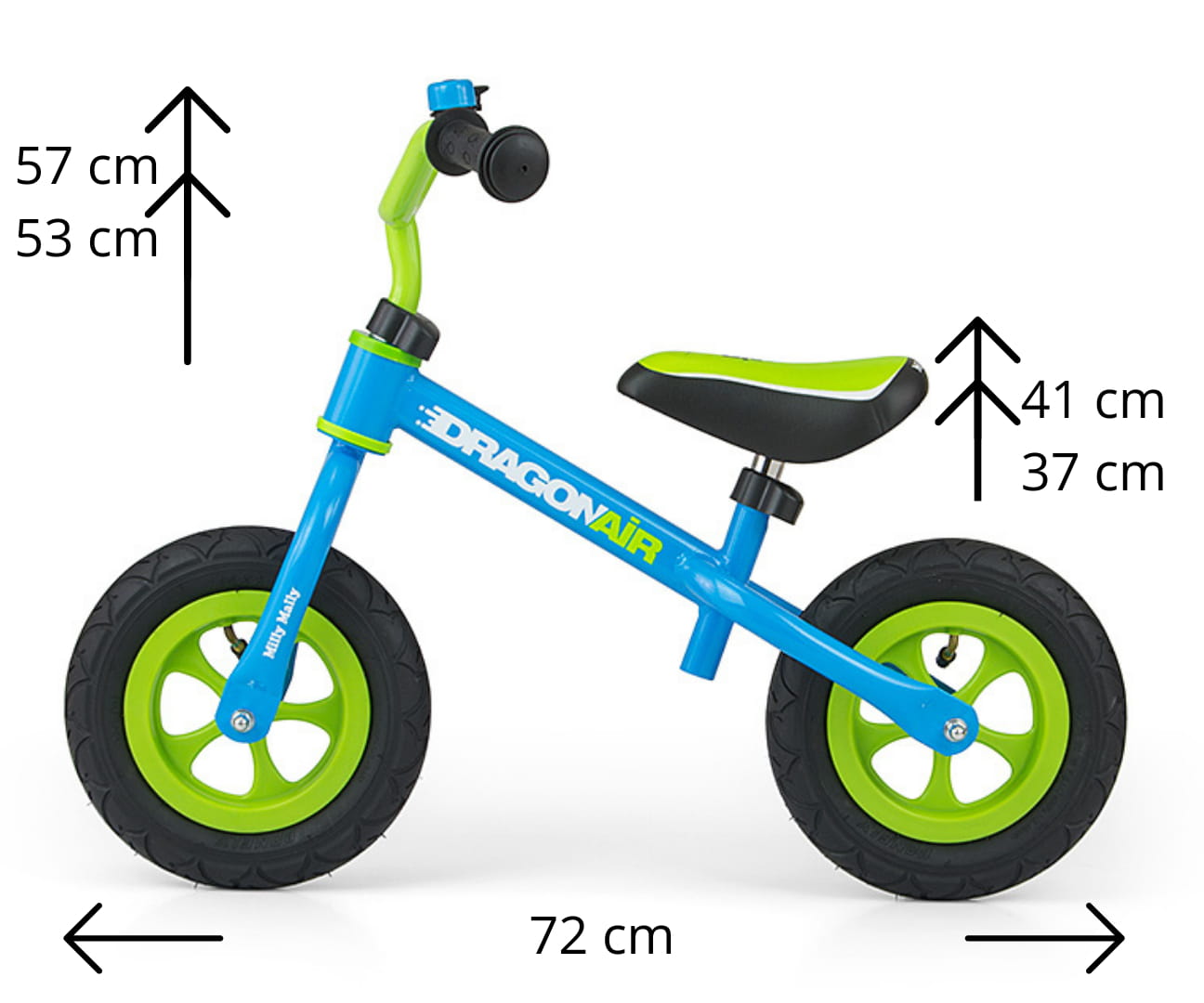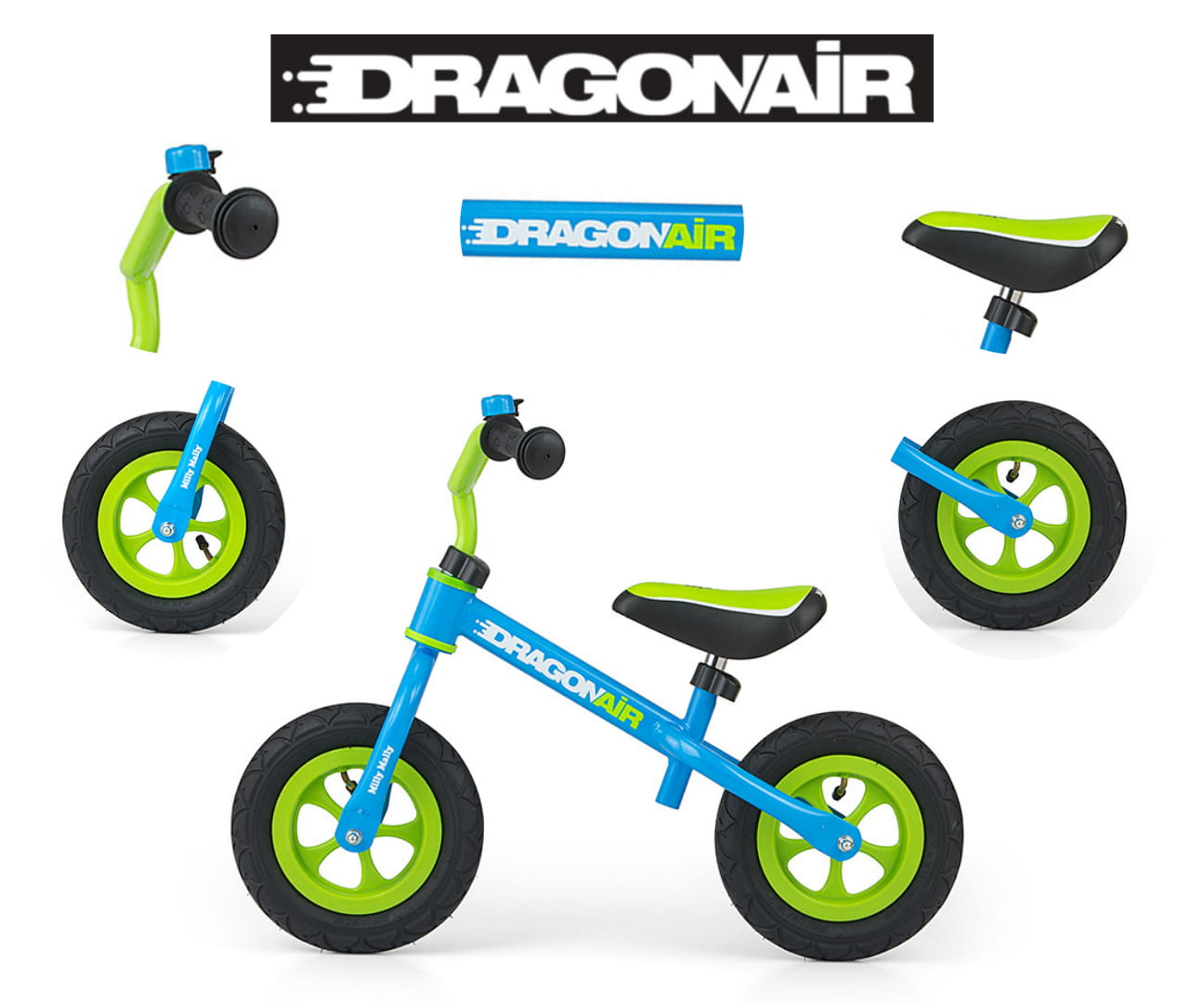 Rowerek DRAGON AIR został wyposażony w szerokie, pompowane opony które zapewnią stabilność i bezpieczeństwo – zatem Młody rowerzysta z łatwością utrzyma równowagę. Bieżnikowane opony sprawdzą się na wszystkich powierzchniach.