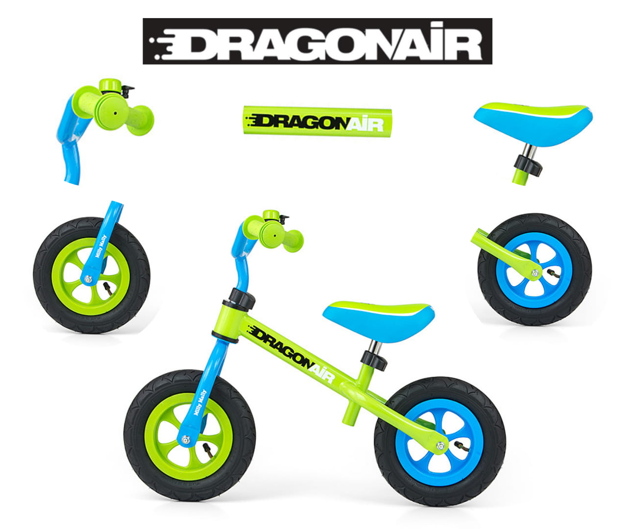 Rowerek DRAGON AIR został wyposażony w szerokie, pompowane opony które zapewnią stabilność i bezpieczeństwo – zatem Młody rowerzysta z łatwością utrzyma równowagę. Bieżnikowane opony sprawdzą się na wszystkich powierzchniach.