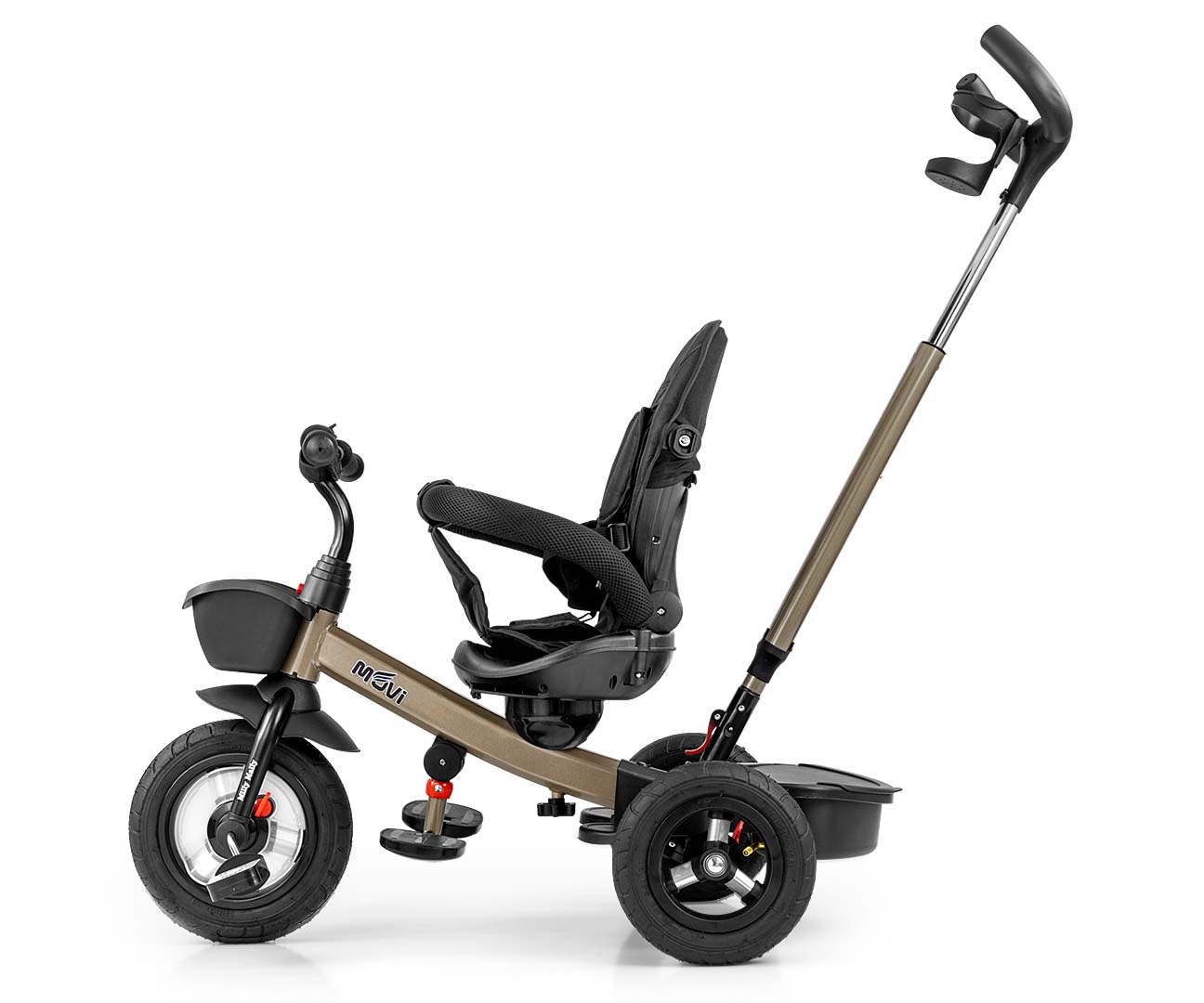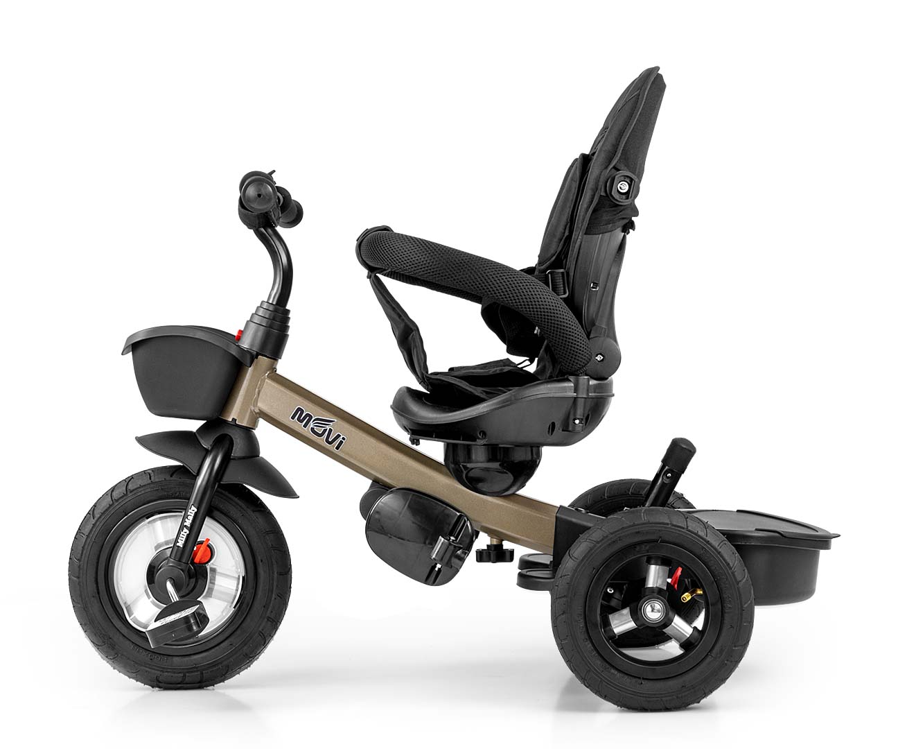 MOVI jest stabilny i bezpieczny, posiada nowoczesną konstrukcję, wygodne wyprofilowane obracane o 360 stopni siedzisko, które umożliwi podróż przodem lub tyłem do kierunku jazdy. Rowerek został wyposażony w barierkę zabezpieczająca dziecko przed wypadnięciem, trzypunktowe pasy bezpieczeństwa oraz podnóżki a pompowane koła umożliwiają cichą i komfortową jazdę. Po zdemontowaniu rączki, barierek, budki i pokrowca na siedzisko MOVI będzie służył jako rowerek trójkołowy. Dzięki funkcji „wolnego koła” dziecko może swobodnie pedałować, a kierownica dla rodzica nadal może korygować prędkość przemieszczania.