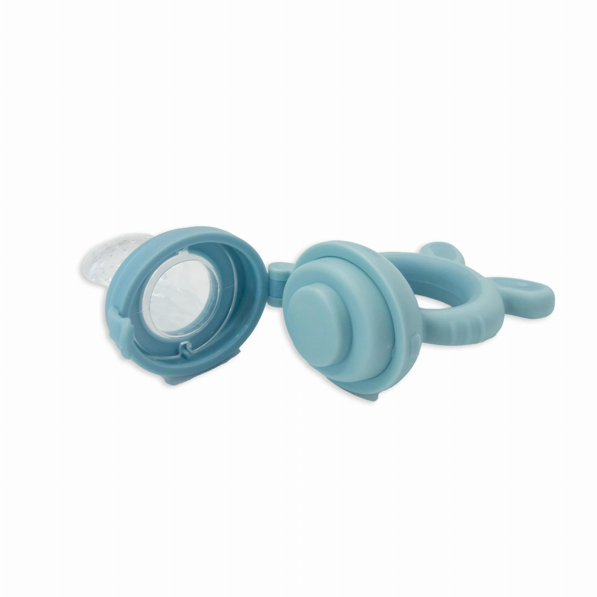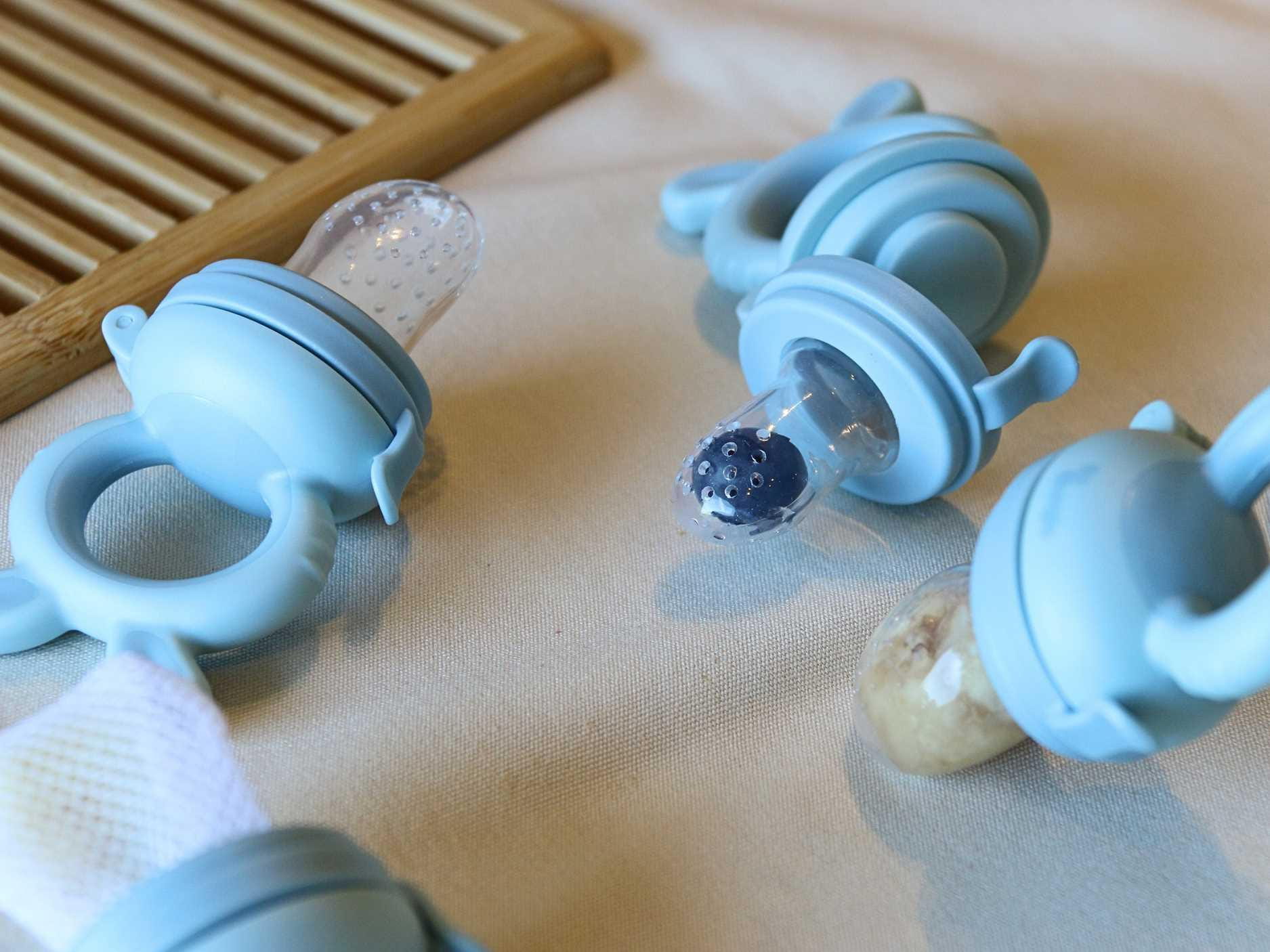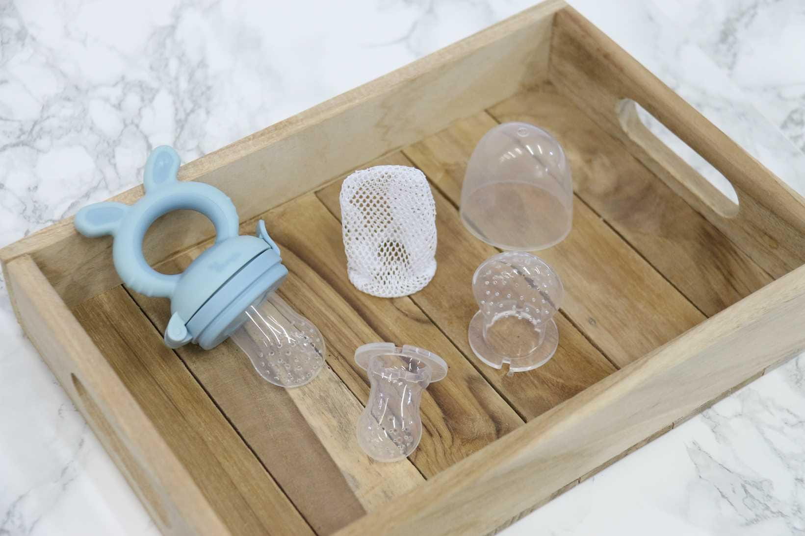 Smoczek 4w1 do podawania owoców jest wykonany z bezpiecznego, nietoksycznego silikonu i pozwala małym dzieciom nauczyć się samodzielnego jedzenia, a jego kształt i budowa pełni także funkcję gryzaka. Ergonomiczny uchwyt jest łatwy do trzymania dla małych rączek. W zestawie są aż 3 różne smoczki i siatka do owoców. Korzystając z nich minimalizuje się ryzyko zakrztuszenia, gdy dziecko uczy się połykać pokarmy stałe, zwłaszcza owoce. Wystarczy pokroić warzywa i/lub owoce na małe kawałki i umieść je w odpowiednim smoczku lub siatce. W ten sposób dziecko odkryje nowe smaki bez zadławienia się. Poza tym wykorzystując schłodzone owoce podajnik świetnie sprawdzi się podczas ząbkowania. Dzięki poręcznej pokrywce/nasadce można go wygodnie przechowywać, a silikonowa końcówka utrzymana jest w czystości.