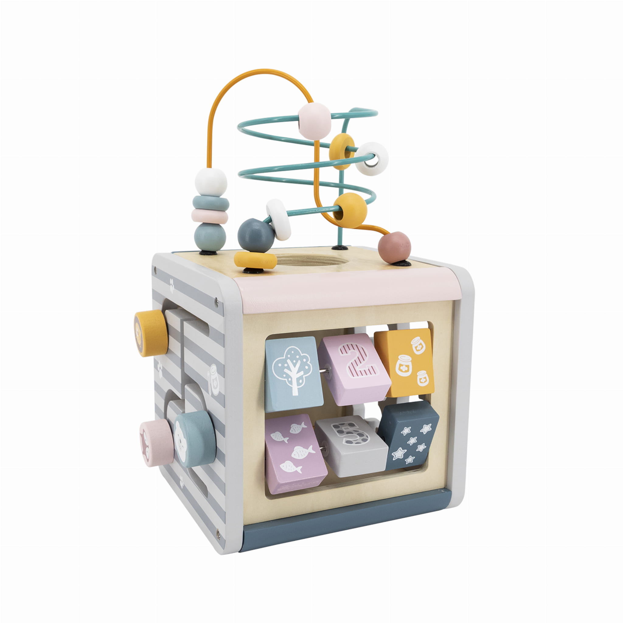 Kostka edukacyjna z labiryntem przestrzennym od firmy Viga to idealny prezent, który ucieszy każde dziecko. Ta funkcjonalna zabawka zapewni Waszemu maluchowi rozrywkę na wiele godzin. Każdy z boków sześcianu to inna zabawa. Dziecko samo decyduje, czym w danym momencie chce się bawić.