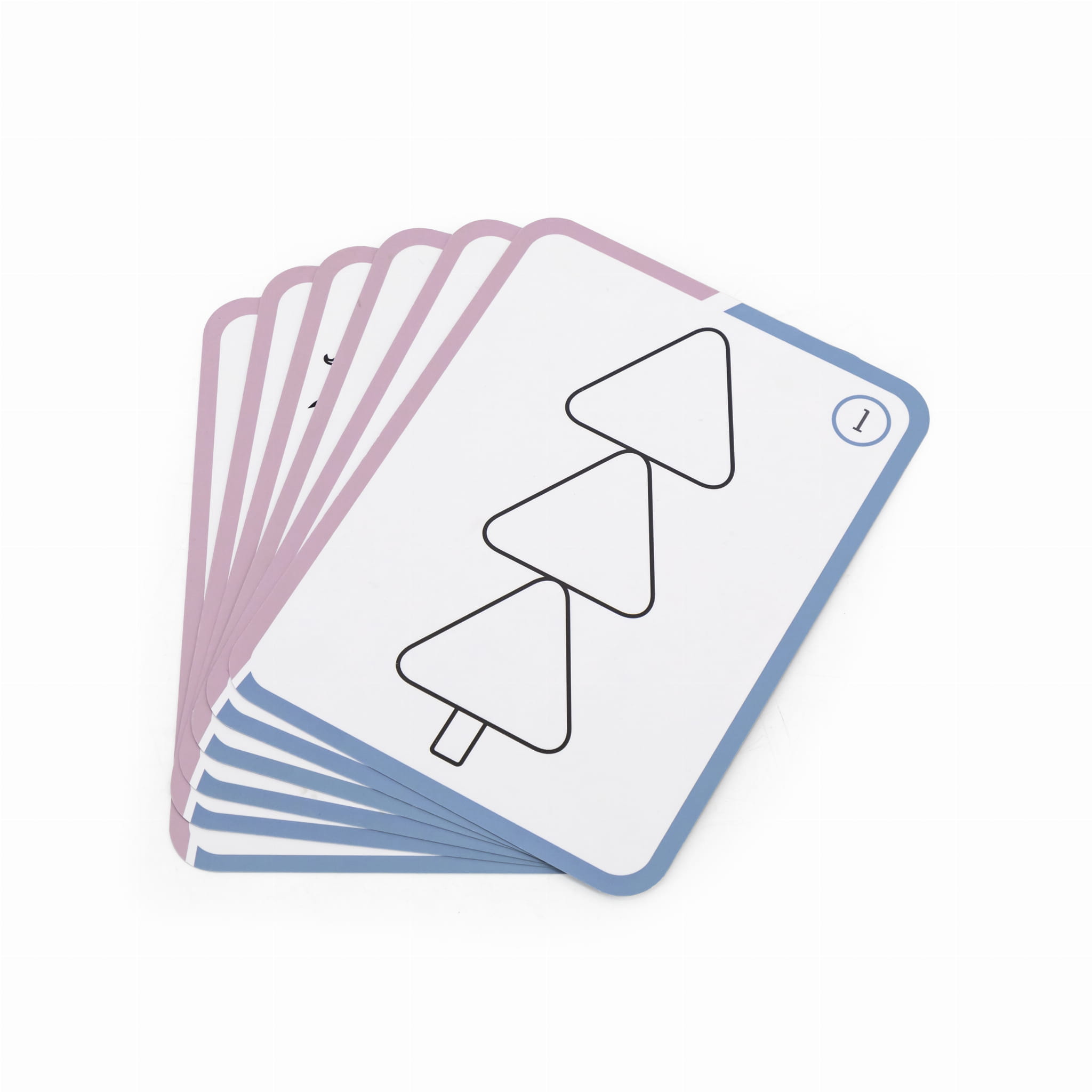 Zabawka składa z ruchomej tarczy, 25 klocków w różnych kombinacjach kolorów i kształtów oraz kart dwustronnych z obrazkami. Klocki można układać na tarczy dopasowując odpowiednie kształty i kolory lub na kartach układając przedstawione na nich obrazki.