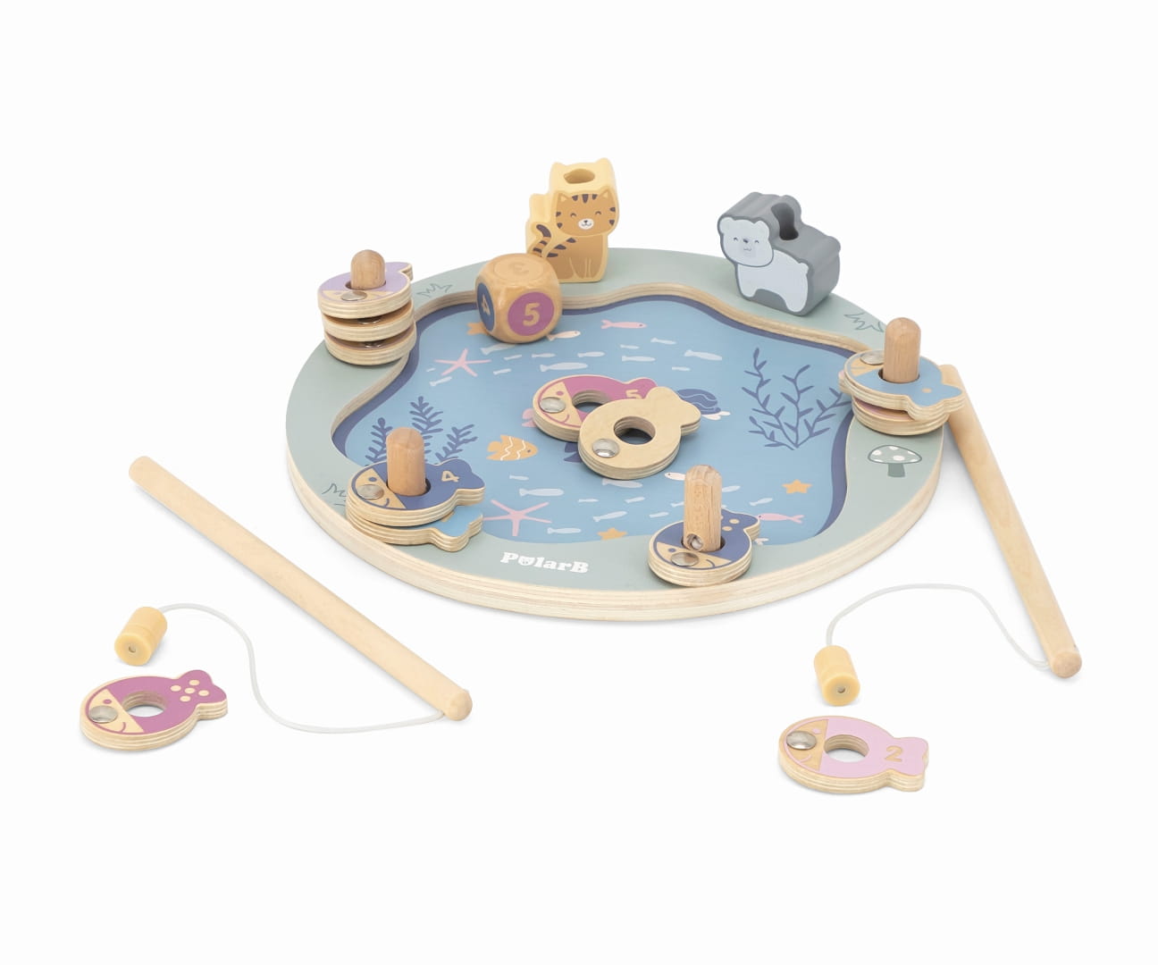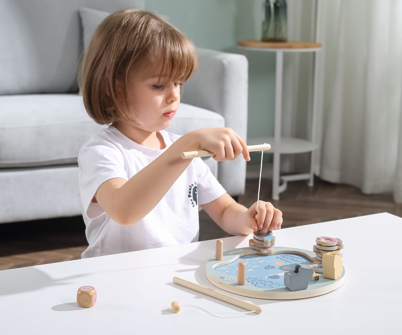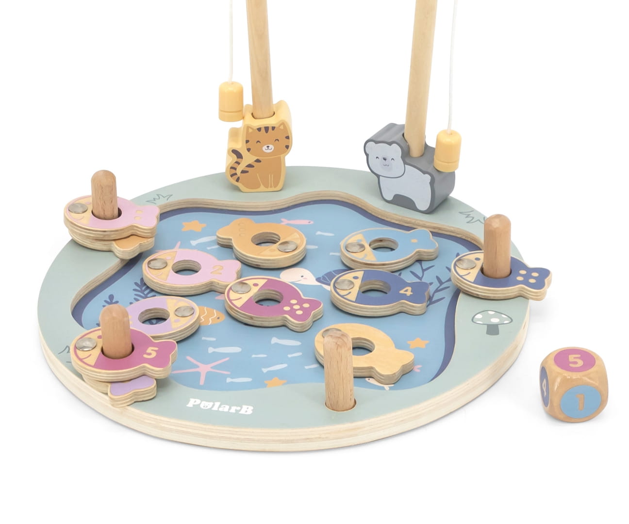 Magnetyczna gra zręcznościowa składa się z dwunastu rybek (po dwie z cyframi od 1 do 6), jednej kostki i dwóch wędek. Rybki można rozróżnić po kolorze, cyferce lub ilości kropek jej odpowiadającej. Jest do wspaniałe narzędzie do nauki cyfr i kolorów. Dodatkowo, dziecko będzie rozwijało swoją: wyobraźnie, kreatywność, cierpliwość, motorykę oraz sensorykę i myślenie przestrzenne.