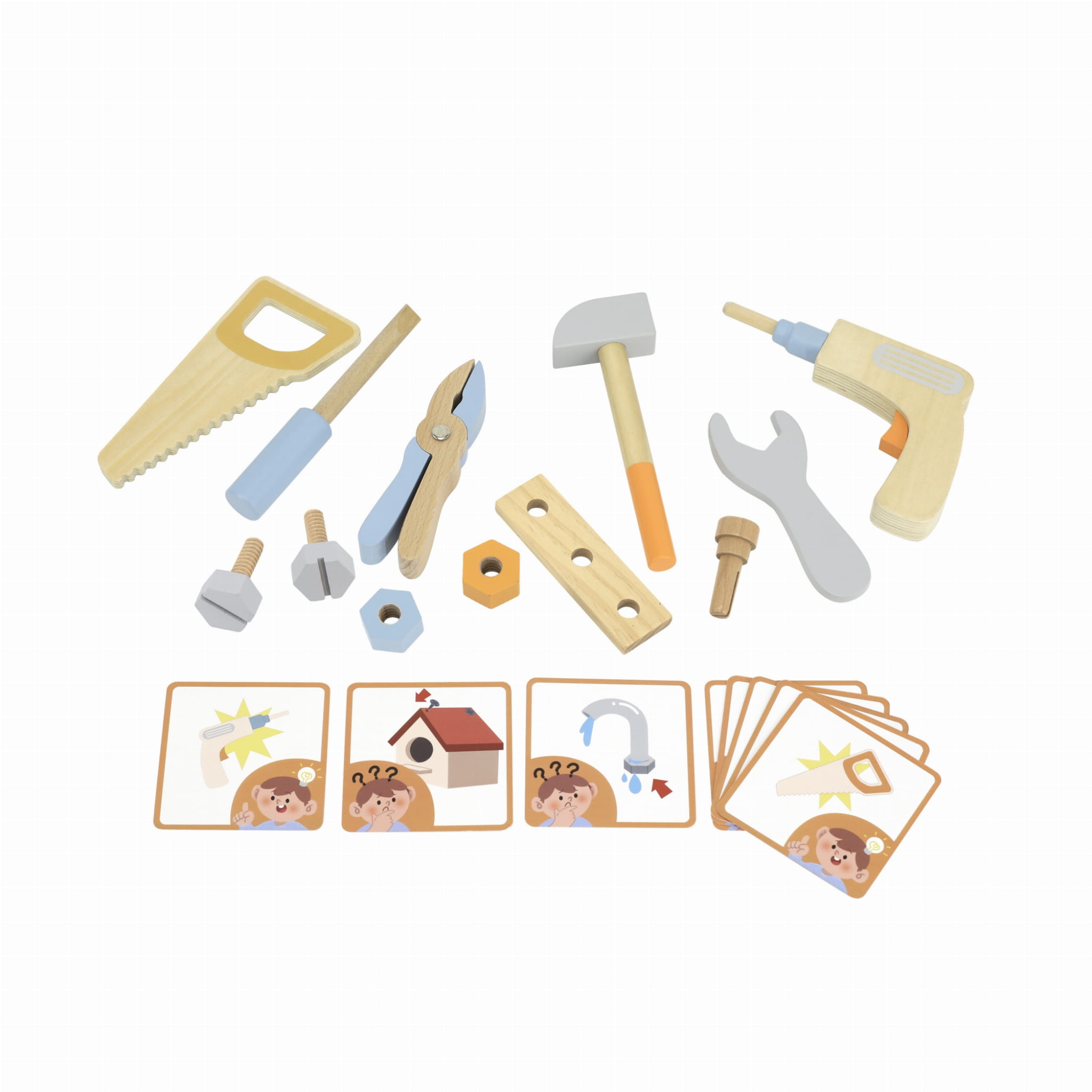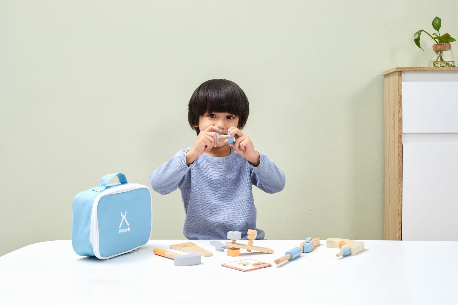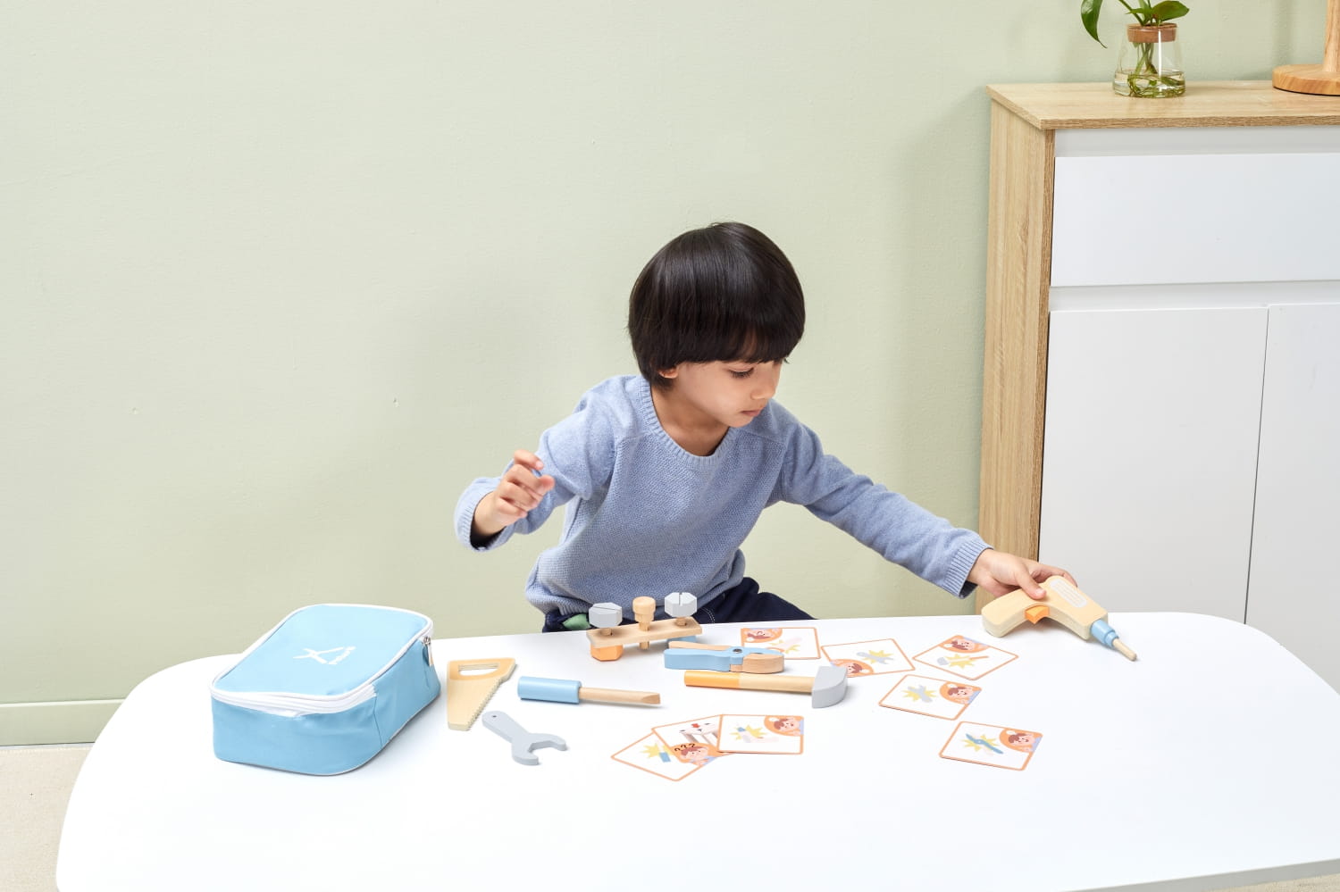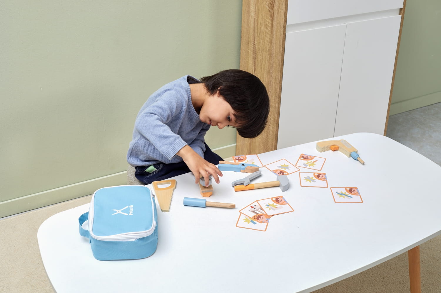 Zestaw narzędzi zachęca dziecko do pomysłowej zabawy i zachowań edukacyjnych.