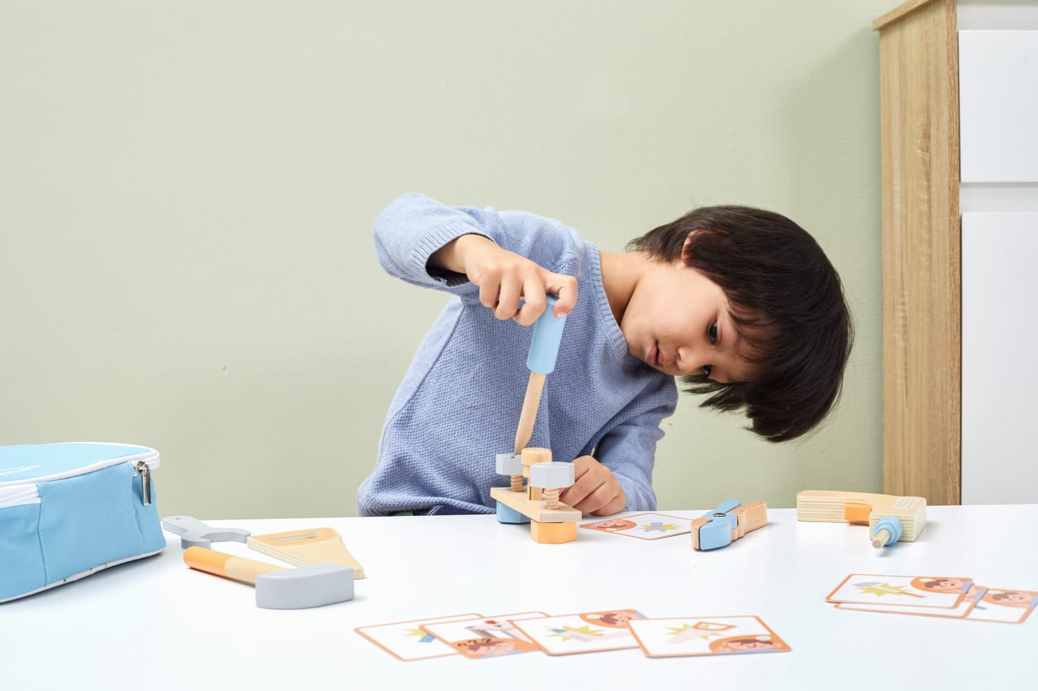 Dołącz do zabawy i pokaż Twojemu dziecku jak poprawnie i bezpiecznie używać narzędzi.