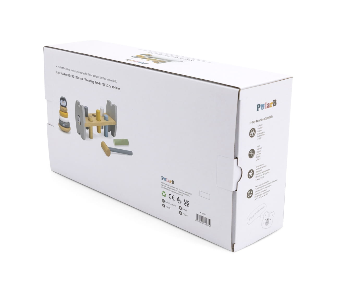 Natomiast zadaniem dziecka w PolarB Przebijanka Pingwin jest wbić wszystkie kolorowe kołeczki w otwory, aby przeszły na drugą stronę stojaczka przebijanki. Czynność można powtarzać poprzez obracanie zabawki.