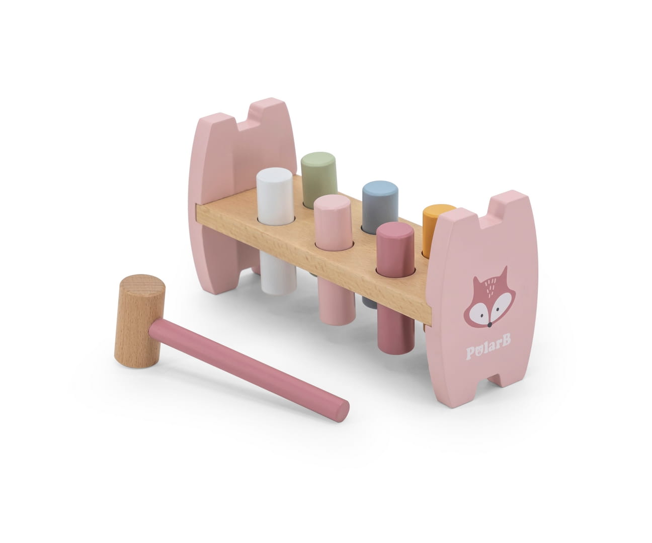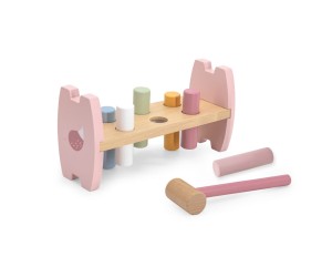 Kolorowa przebijaka i piramidka Lis od firmy Viga to produkt, który pokocha każde dziecko. Delikatne pastelowe kolory oraz wygodny w uchwyceniu młotek zachęcą każdego malucha do zabawy. Zadaniem dziecka jest wbić wszystkie kołki w otwory, aby przeszły na drugą stronę ramy. Czynność można powtarzać poprzez obracanie zabawki.