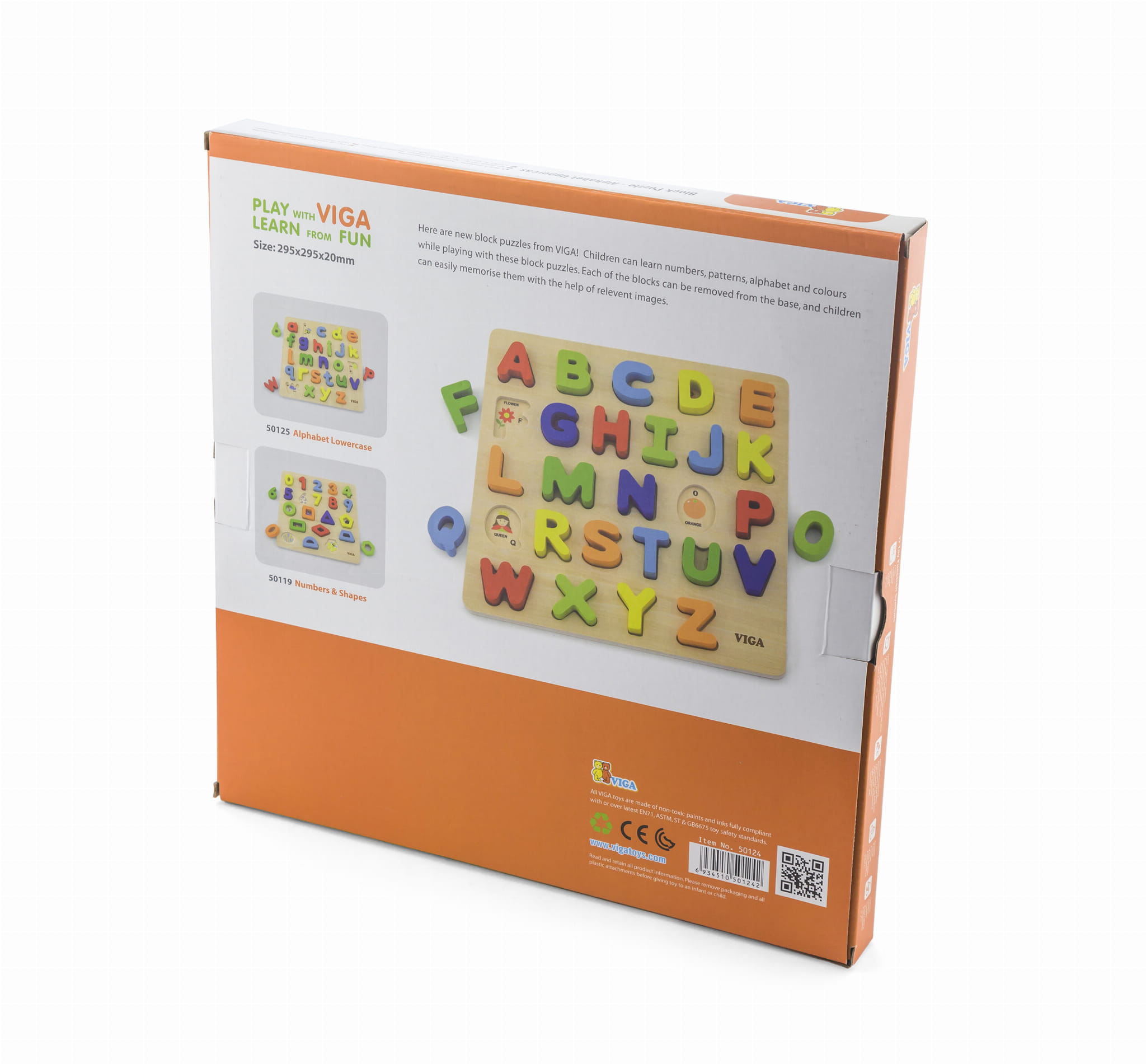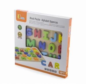 Sorter kształtów na podkładce od firmy Viga to idealny prezent, który ucieszy każde dziecko. Ta funkcjonalna zabawka poprzez wyraziste kolory, trójwymiarowe kształty oraz obrazki zapewni Waszemu maluchowi rozrywkę na wiele godzin. Dzieci muszą poprawnie dopasować drewniane literki alfabetu do otworów w podkładce. Na każdym z otworów jest obrazek, który pobudzi ciekawość dziecka oraz ułatwi dopasowanie literek. W ten sposób pociechy poprzez zabawę ćwiczą swoje zdolności manualne jednocześnie ucząc się literek.