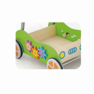 Umieszczone na panelach bocznych kolorowe przekładnie obrotowe i labirynt, który dziecko musi pokonać poruszając mały drewniany samochodzik zapewniają rozrywkę, dostarczą malcowi cennych bodźców wzrokowych oraz uczą rozpoznawania kolorów, a także ćwiczą zwinność małych paluszków.