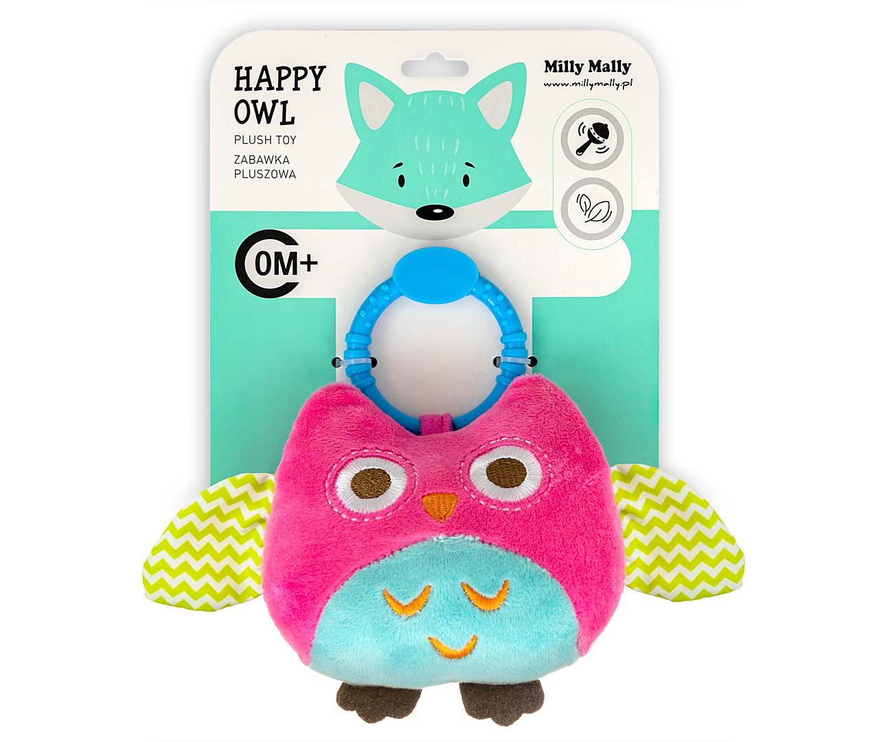 Zawieszka-pluszowa sówka, została stworzona z wysokiej jakości, bezpiecznych, zróżnicowanych materiałów i miłego w dotyku miękkiego pluszu. Zachwyca różnorodnością bodźców jak i jakością wykonania. Skrzydełka, uszka i nóżki odstają co umożliwi dziecku chwytanie za nie. Natomiast, w brzuszku znajduje się dzwoneczek, który z pewnością zaintryguje maluszka. Praktyczna klamra pozwoli przymocować zawieszkę w wybranym miejscu. Dzięki zastosowaniu różnych faktur, kolorów i dźwięku, pluszowa sówka będzie stymulowała zmysł dotyku, wzroku i słuchu, wrażliwość dziecka na spostrzeganie świata oraz koordynację manualną. Dodatkowo, zawieszka umożliwi dzieciom badanie świata poprzez głaskanie, przytulanie, oglądanie i szarpanie poszczególnych elementów.