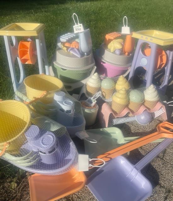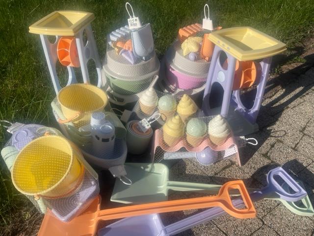 Zestaw z rożkami do lodów i różnymi polewami, przedstawiający różne smaki lodowych kulek. Zestaw zawiera również tacę/stojaczek, na której dzieci mogą umieszczać rożki z lodami, tak jak w prawdziwej lodziarni. W zestawie znajduje się również łyżka do robienia gałek lodów. Zestaw może być używany zarówno w pomieszczeniach, jak i na zewnątrz, do zabawy w piasku i wodzie. Wszystko w pięknych pastelowych kolorach!